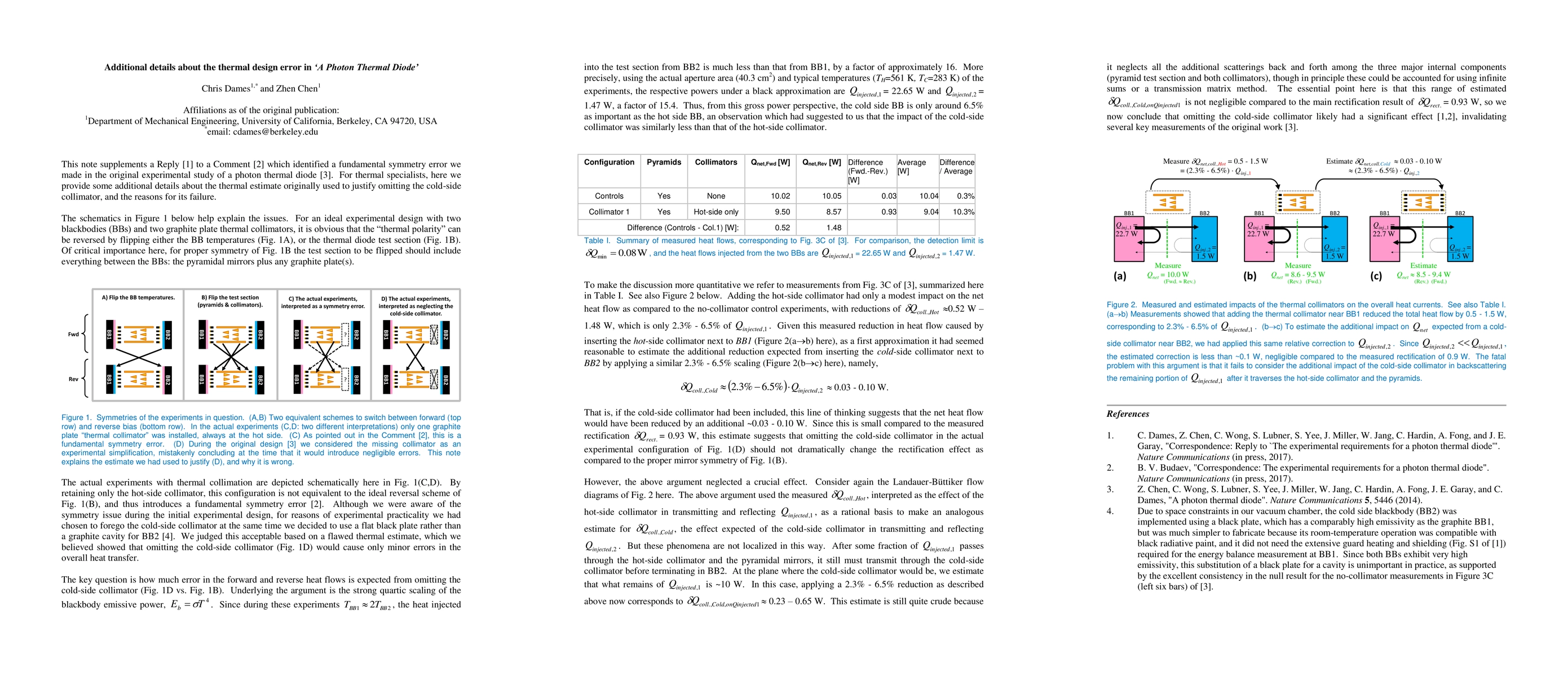 This note supplements a Reply [1] to a Comment [2] which identified a fundamental symmetry error we made in the original experimental study of a photon thermal diode [3]. For thermal specialists, here we provide some additional details about the thermal estimate originally used to justify omitting the cold-side thermal collimator, and the reasons for its failure. References [1]. C. Dames, Z. Chen, C. Wong, S. Lubner, S. Yee, J. Miller, W. Jang, C. Hardin, A. Fong, and J. E. Garay, "Correspondence: Reply to `The experimental requirements for a photon thermal diode'". Nature Communications (in press, 2017). [2]. B. V. Budaev, "Correspondence: The experimental requirements for a photon thermal diode". Nature Communications (in press, 2017). [3]. Z. Chen, C. Wong, S. Lubner, S. Yee, J. Miller, W. Jang, C. Hardin, A. Fong, J. E. Garay, and C. Dames, "A photon thermal diode". Nature Communications 5, 5446 (2014).