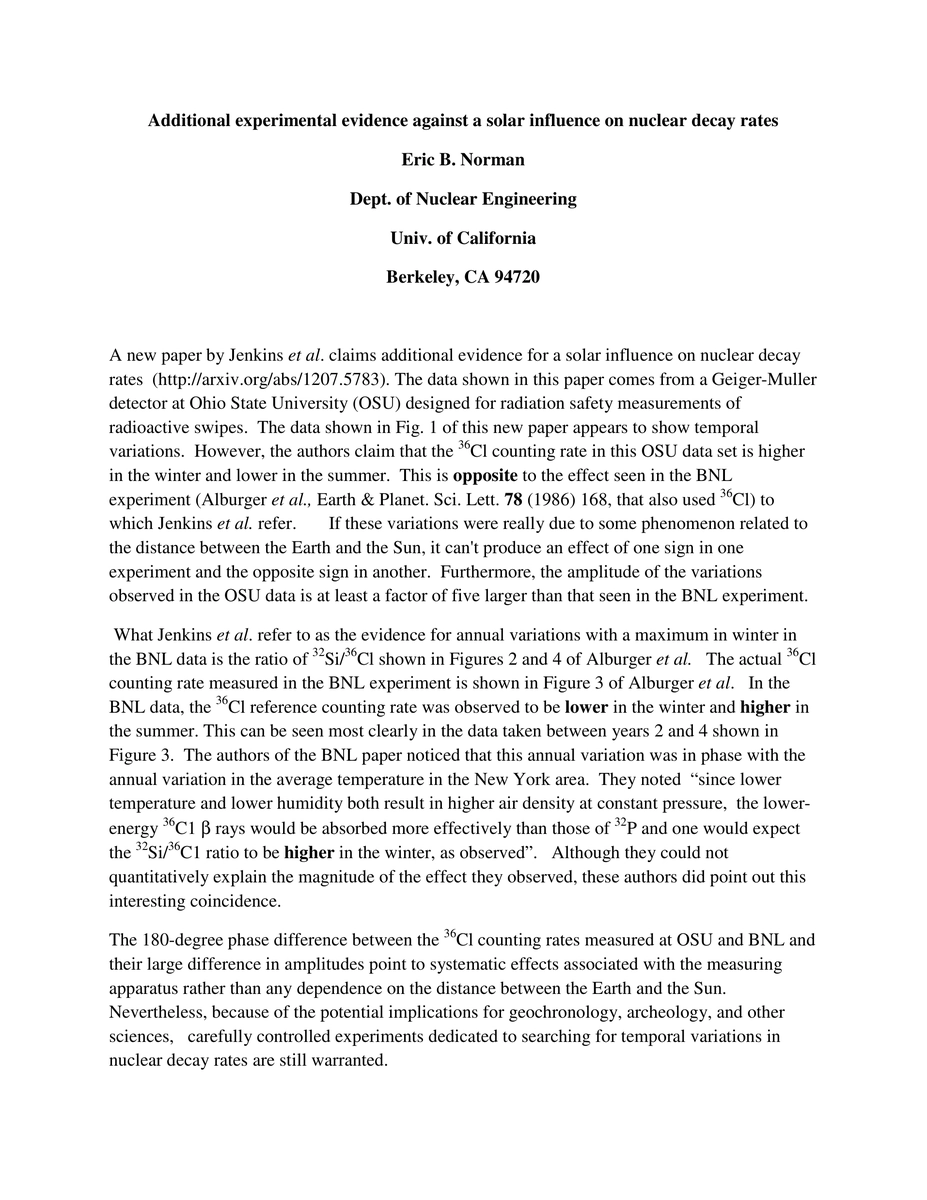 Conflicting results from two experiments studying the decay of Cl-36 point to instrumental artifacts rather than a solar influence being responsible for variations in measured counting rates.