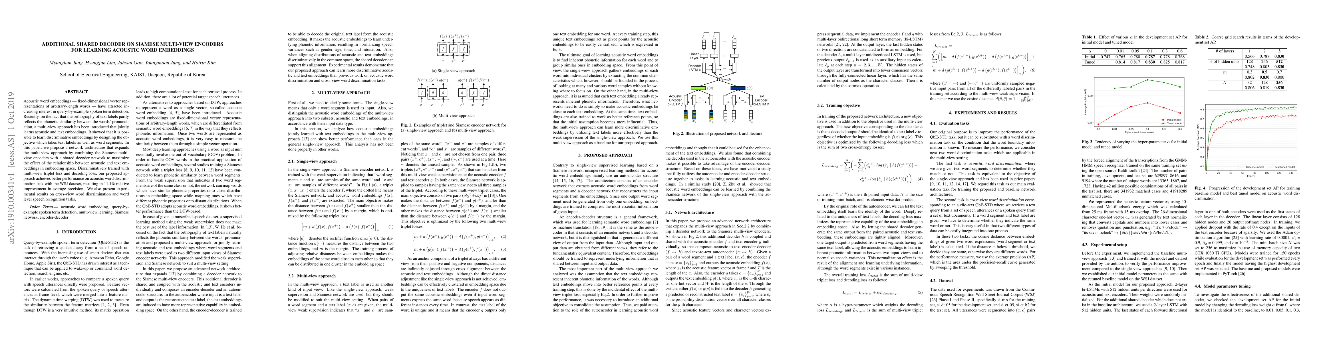 This paper proposes a network architecture combining Siamese multi-view encoders with a shared decoder to enhance learning of acoustic word embeddings. The approach achieves a 11.1% relative improvement in average precision for acoustic word discrimination on the WSJ dataset.