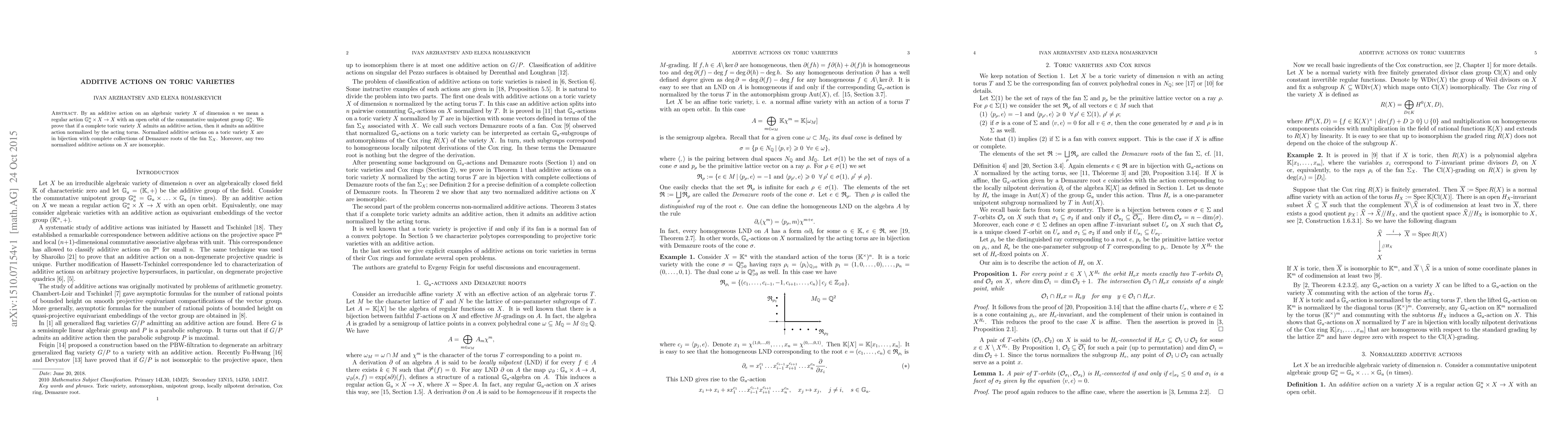 This paper proves that complete toric varieties with additive actions admit normalized additive actions, which correspond to complete collections of Demazure roots of the fan, and any two such normalized actions on the same variety are isomorphic.