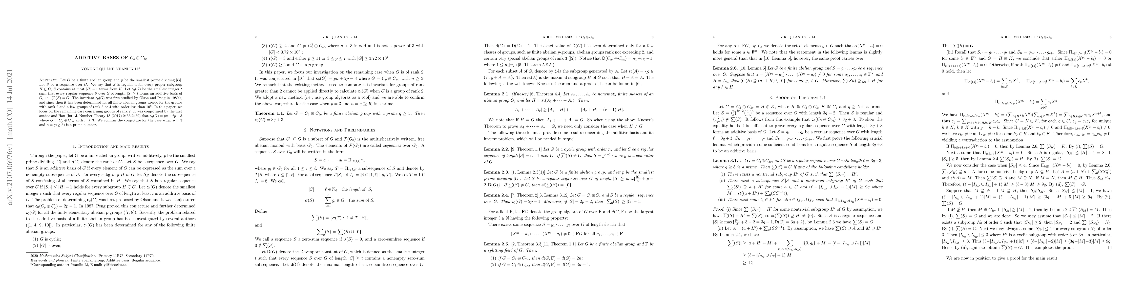 Let $G$ be a finite abelian group and $p$ be the smallest prime dividing $|G|$. Let $S$ be a sequence over $G$. We say that $S$ is regular if for every proper subgroup $H \subsetneq G$, $S$ contains at most $|H|-1$ terms from $H$. Let $\mathsf c_0(G)$ be the smallest integer $t$ such that every regular sequence $S$ over $G$ of length $|S|\geq t$ forms an additive basis of $G$, i.e., $\sum(S)=G$. The invariant $\mathsf c_0(G)$ was first studied by Olson and Peng in 1980's, and since then it has been determined for all finite abelian groups except for the groups with rank 2 and a few groups of rank 3 or 4 with order less than $10^8$. In this paper, we focus on the remaining case concerning groups of rank 2. It was conjectured by the first author and Han (Int. J. Number Theory 13 (2017) 2453-2459) that $\mathsf c_0(G)=pn+2p-3$ where $G=C_p\oplus C_{pn}$ with $n\geq 3$. We confirm the conjecture for the case when $p=3$ and $n=q \,(\geq 5)$ is a prime number.