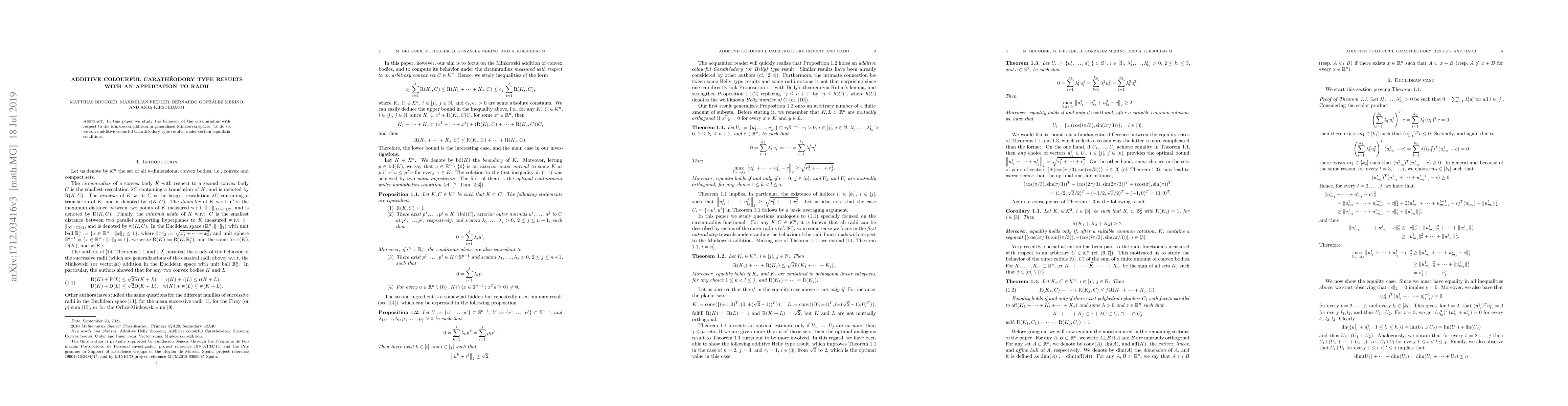 Summary: This paper investigates the relationship between the circumradius and Minkowski addition in generalized Minkowski spaces, solving additive colourful Carathéodory type problems under equilibrium conditions. The findings have implications for understanding radii in these spaces.