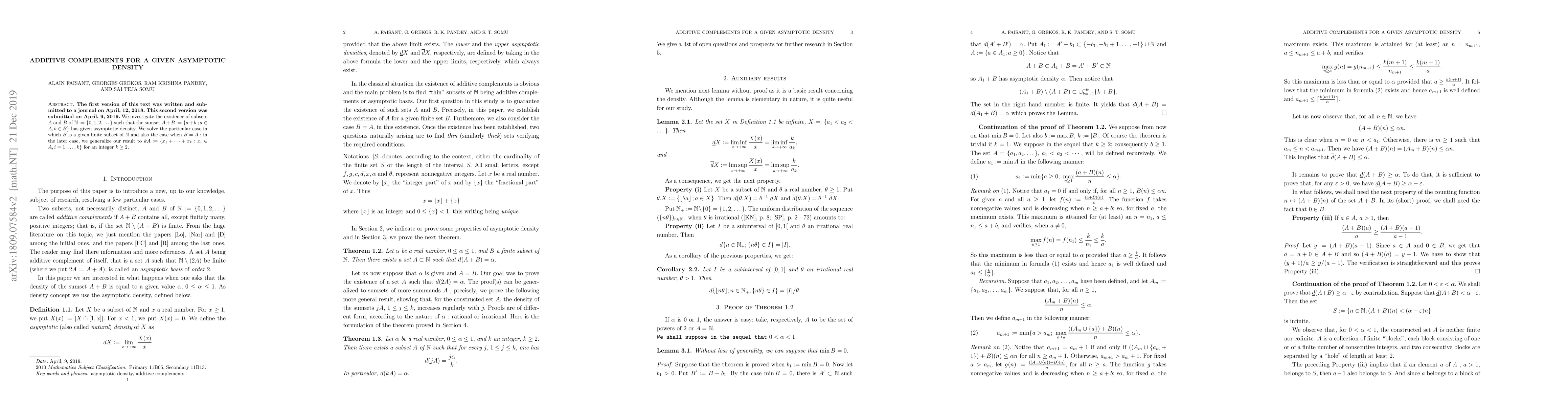 {The first version of this text was written and submitted to a journal on April, 12, 2018. This second version was submitted on April, 9, 2019.} We investigate the existence of subsets $A$ and $B$ of $\mathbb{N}:=\{0,1,2,\dots\}$ such that the sumset $A+B:=\{a+b~;a\in A,b\in B\}$ has given asymptotic density. We solve the particular case in which $B$ is a given finite subset of $\mathbb{N}$ and also the case when $B=A$ ; in the later case, we generalize our result to $kA:=\{x_1+\cdots+x_k: x_i\in A, i=1,\dots,k\}$ for an integer $k\geq2.$