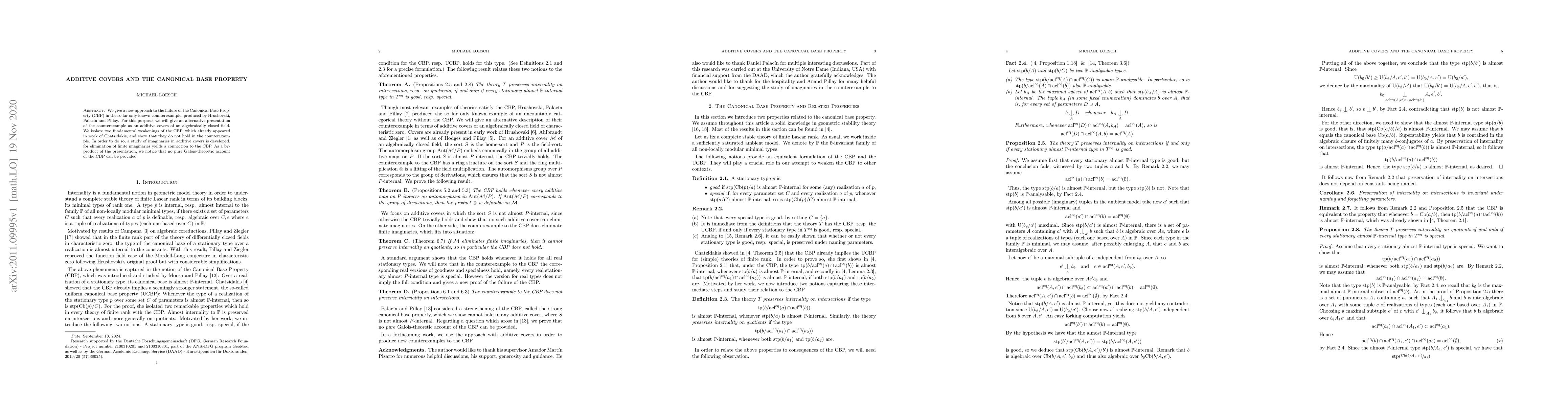 Researchers found a new approach to disproving a long-standing mathematical property known as the Canonical Base Property, which challenges our understanding of algebraically closed fields. By re-examining an existing counterexample as an additive cover, they isolated two fundamental weakenings of the property and showed that they do not hold in this case.