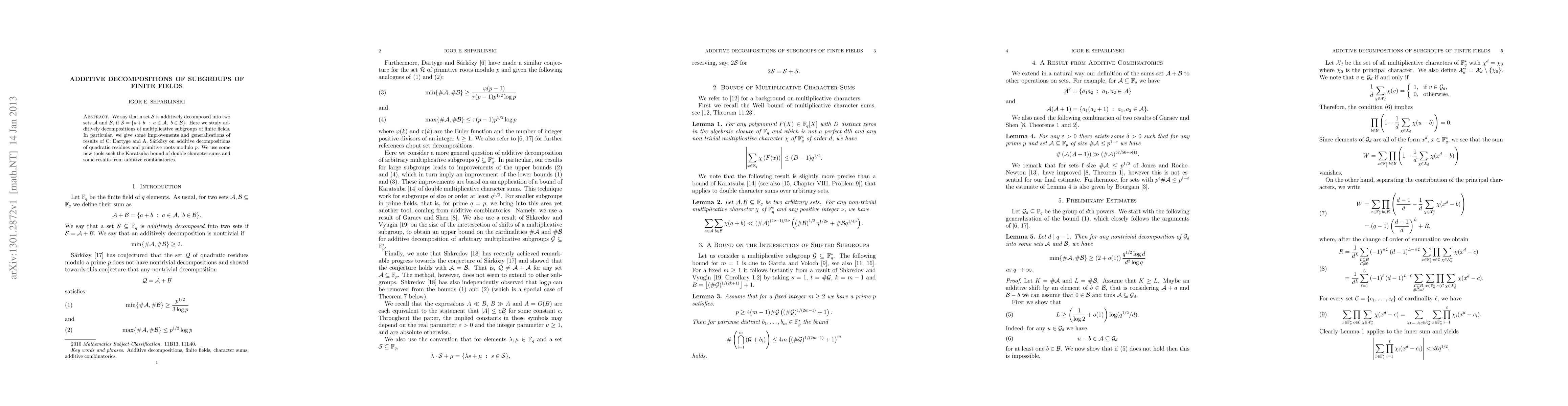 This paper explores additive decompositions of multiplicative subgroups in finite fields, improving and extending prior results on quadratic residues and primitive roots. It employs advanced tools like the Karatsuba bound and insights from additive combinatorics.