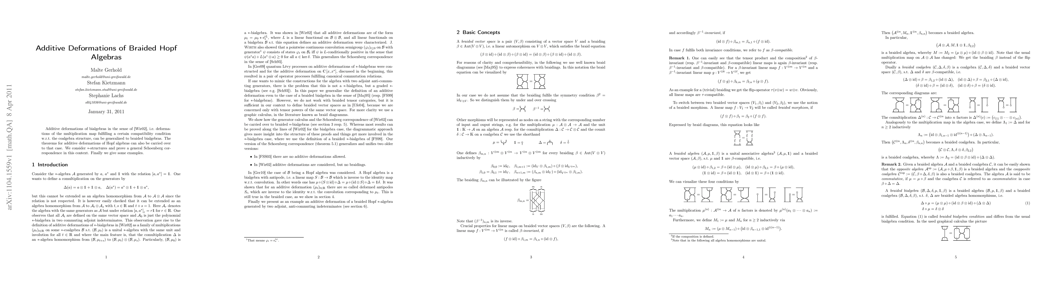 Additive deformations of bialgebras in the sense of J. Wirth, i.e. deformations of the multiplication map fulfilling a certain compatibility condition w.r.t. the coalgebra structure, can be generalized to braided bialgebras. The theorems for additive deformations of Hopf algebras can also be carried over to that case. We consider *-structures and prove a general Schoenberg correspondence in this context. Finally we give some examples.