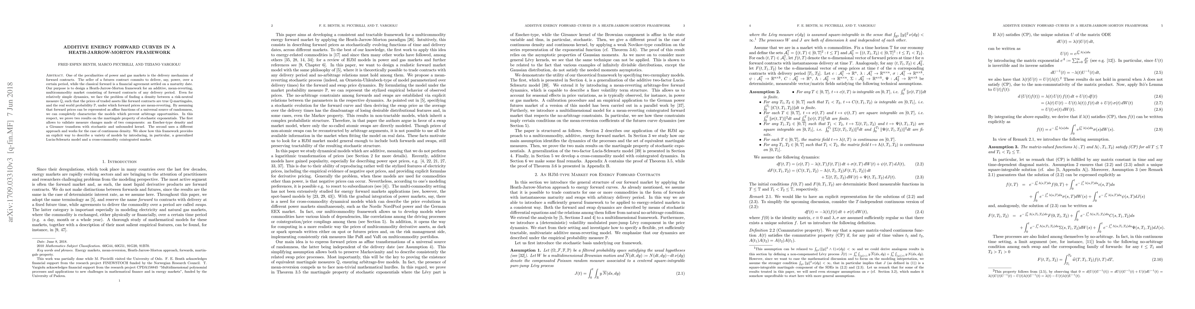 This paper develops a Heath-Jarrow-Morton framework for modeling additive, mean-reverting forward contracts in multicommodity markets, assuming forward prices are affine functions of a universal source of randomness. It characterizes arbitrage-free models by establishing a density between risk-neutral and real-world measures, proving results on the martingale property of stochastic exponentials.