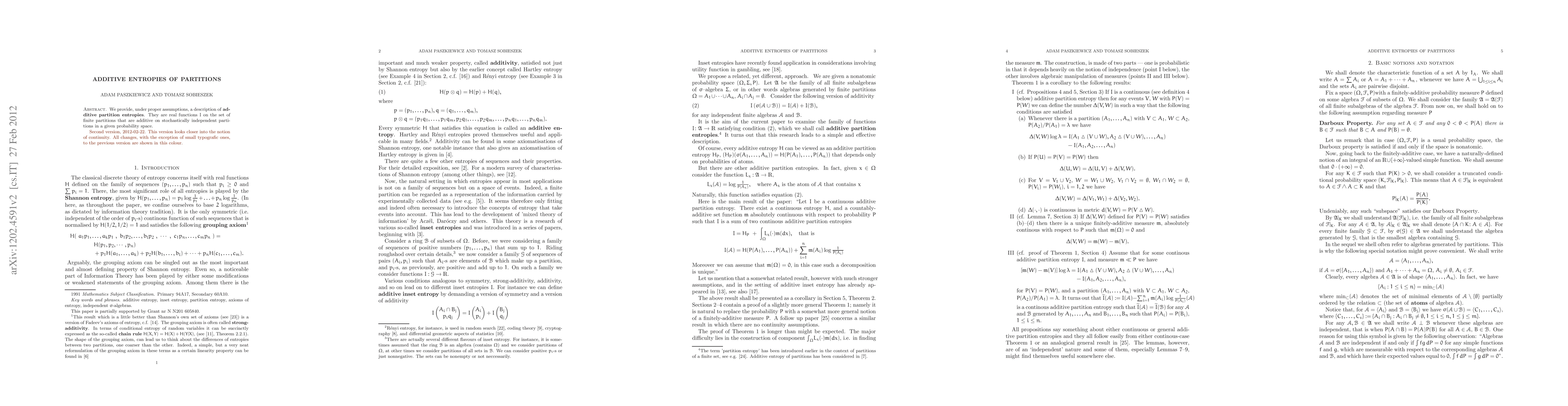 This paper introduces additive partition entropies as a measure of uncertainty for stochastically independent partitions in probability spaces, providing a new way to quantify information.
