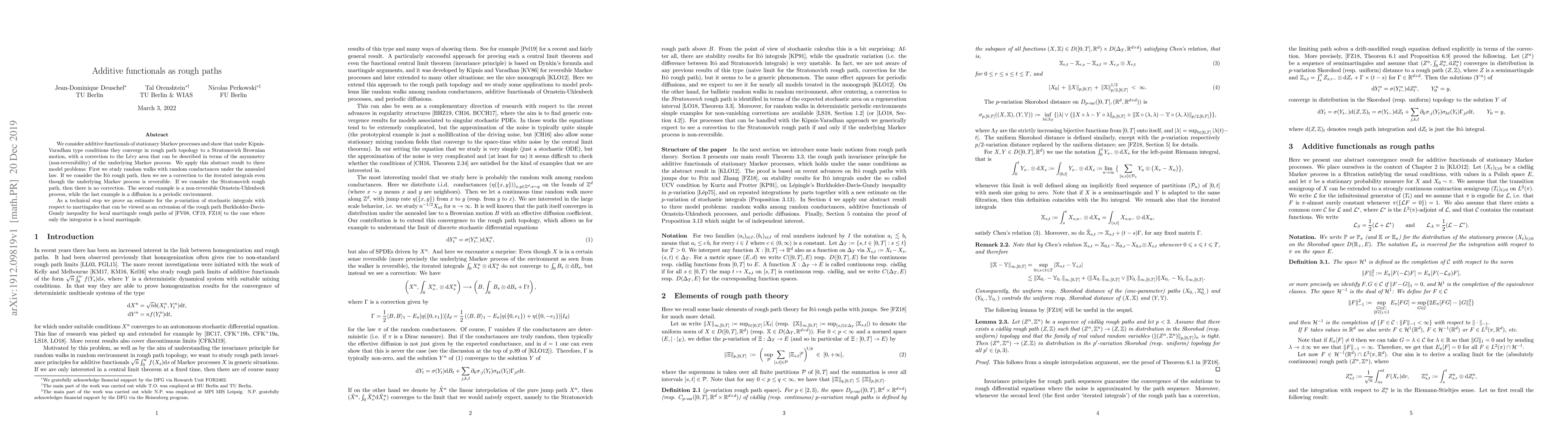 This paper explores the convergence of additive functionals of stationary Markov processes in rough path topology, showing they converge to a Stratonovich Brownian motion with a correction term tied to the asymmetry of the Markov process. It applies this result to random walks, non-reversible Ornstein-Uhlenbeck processes, and diffusions in periodic environments, highlighting differences in corrections under Ito and Stratonovich interpretations.
