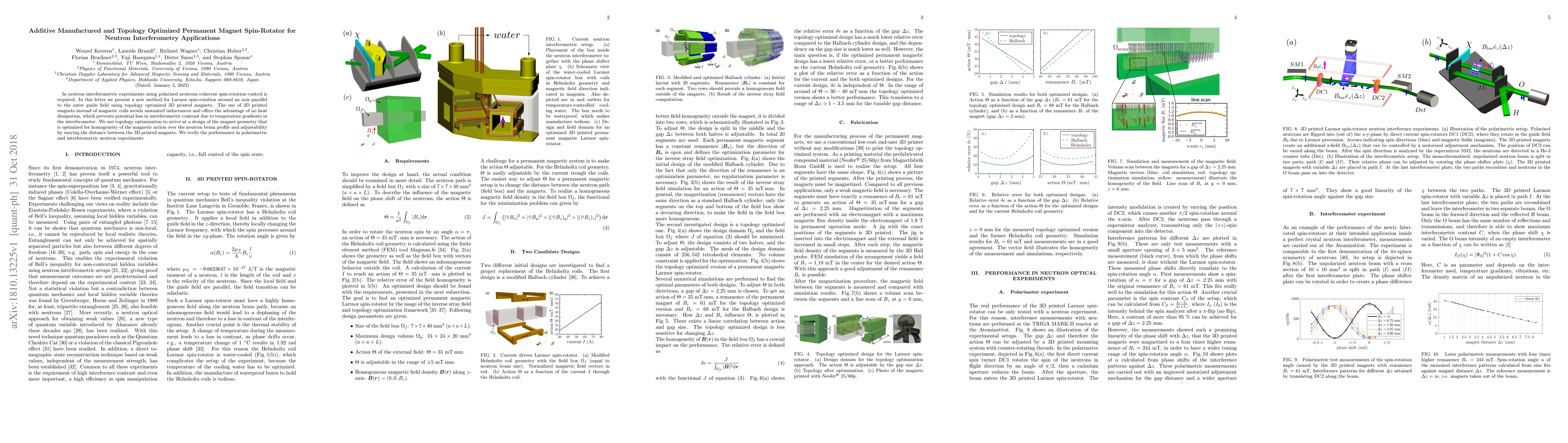 This paper introduces a topology optimized 3D printed magnet for controlling Larmor spin-rotation in neutron interferometry, replacing magnetic coils to avoid inductance and heat dissipation. The design optimizes magnetic homogeneity and adjustability, verified through neutron experiments.