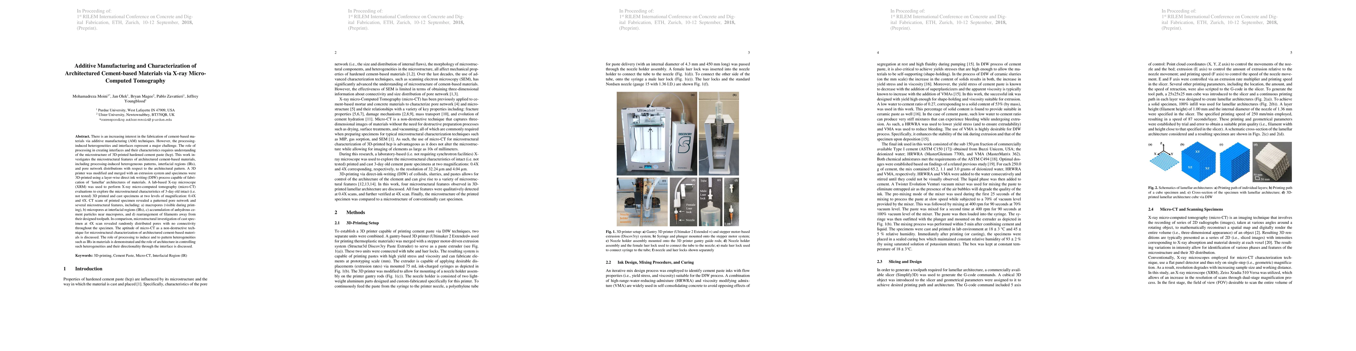 This paper investigates the microstructural features of 3D-printed cement-based materials using X-ray micro-computed tomography, revealing patterned pore networks and processing-induced heterogeneities. Micro-CT effectively characterizes these features, highlighting the role of additive manufacturing in creating specific microstructural patterns.