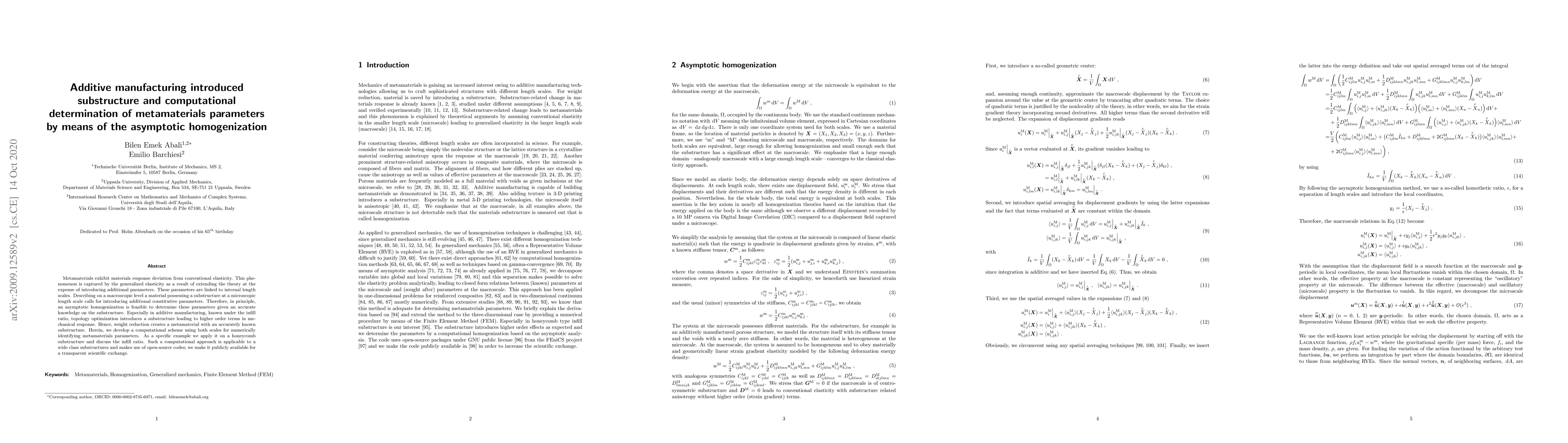 This paper develops a computational scheme for determining metamaterials parameters using asymptotic homogenization and additive manufacturing techniques. It applies this method to a honeycomb substructure, demonstrating the influence of infill ratio and making the open-source code publicly available for broader scientific use.