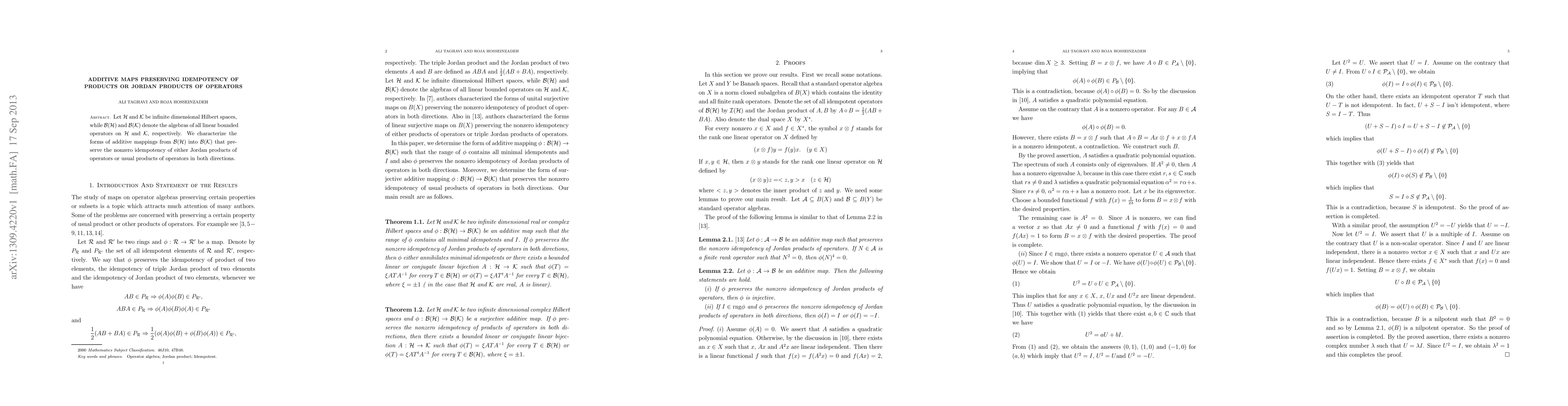 This paper characterizes additive mappings between operator algebras on infinite-dimensional Hilbert spaces that preserve the idempotency of either Jordan or usual products of operators in both directions. The focus is on identifying the specific forms these mappings can take.