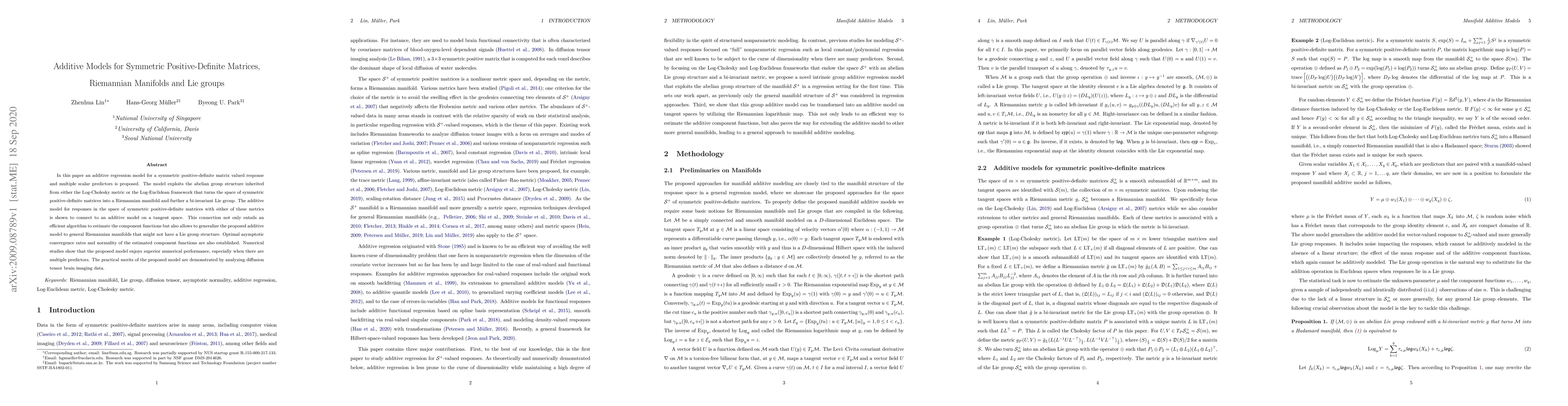 This paper proposes an additive regression model for symmetric positive-definite matrices, utilizing the Riemannian manifold structure to efficiently estimate component functions. It demonstrates superior performance in numerical studies and is applied to analyze diffusion tensor brain imaging data.