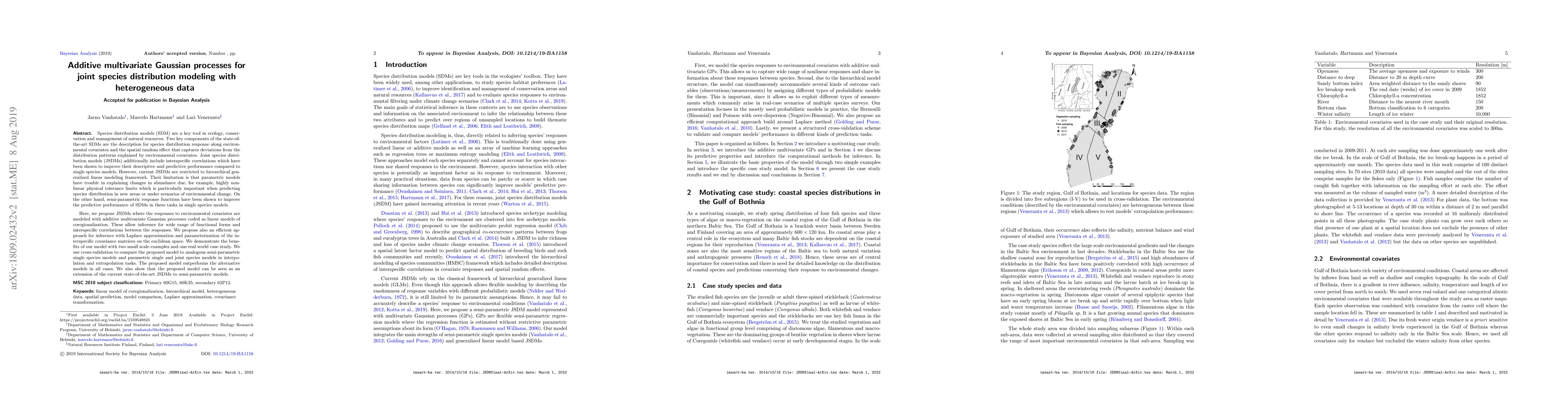 This paper proposes joint species distribution models (JSDMs) using additive multivariate Gaussian processes to better capture non-linear environmental responses and interspecific correlations, outperforming traditional parametric and semi-parametric models in interpolation and extrapolation tasks.