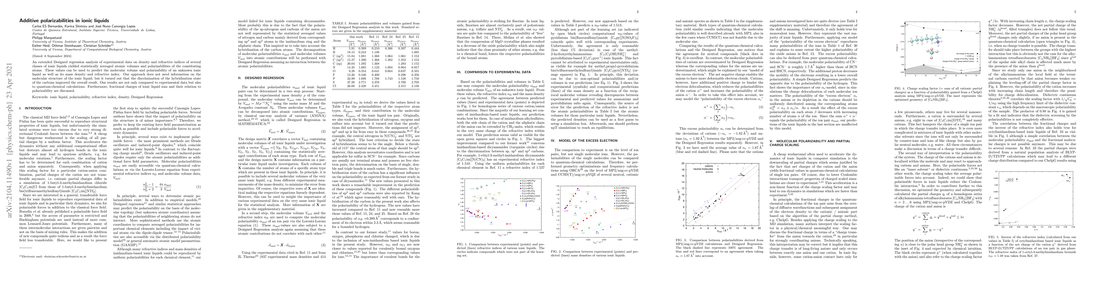 This paper uses designed regression analysis to derive additive polarizabilities and atomic volumes for ionic liquids from density and refractive index data, enabling predictions of unknown ionic liquids' properties without requiring detailed molecular structure information. The study also highlights the importance of carbon hybridization state discrimination and compares results with both experimental data and quantum-chemical calculations.
