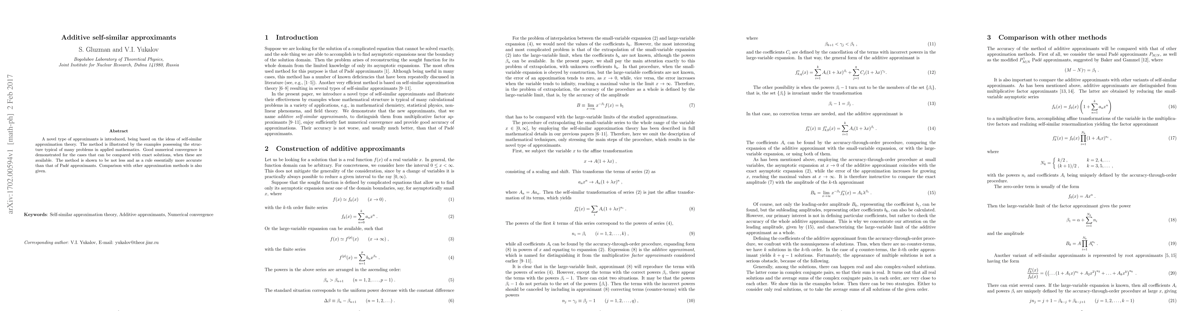 A novel type of approximants is introduced, being based on the ideas of self-similar approximation theory. The method is illustrated by the examples possessing the structure typical of many problems in applied mathematics. Good numerical convergence is demonstrated for the cases that can be compared with exact solutions, when these are available. The method is shown to be not less and as a rule essentially more accurate than that of Pade approximants. Comparison with other approximation methods is also given.