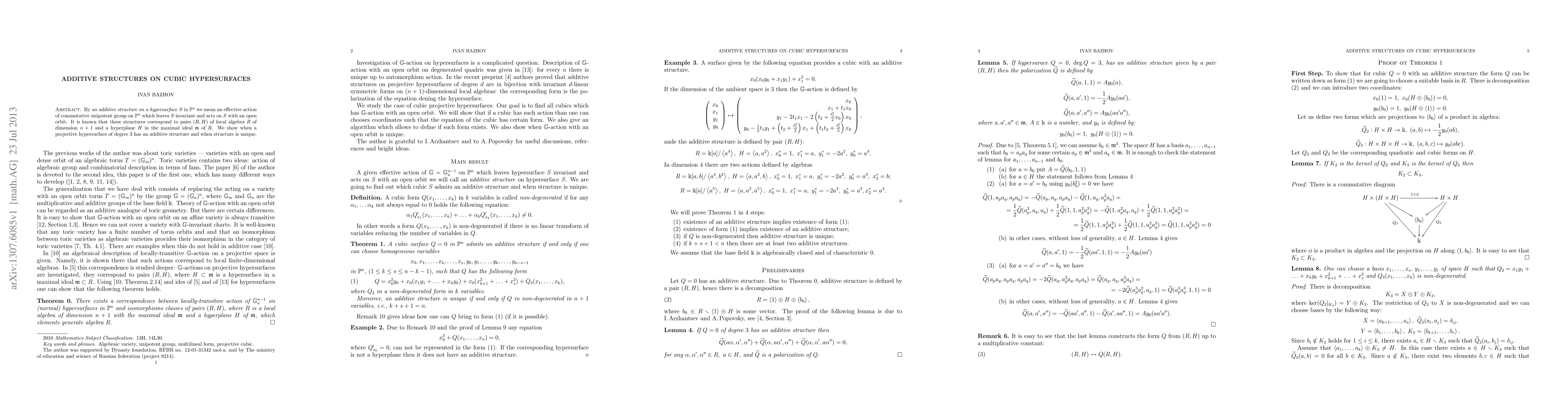 This paper explores additive structures on cubic hypersurfaces, demonstrating conditions for their existence and uniqueness. It links these structures to pairs of local algebras and hyperplanes, providing insights into the geometric and algebraic properties of projective spaces.