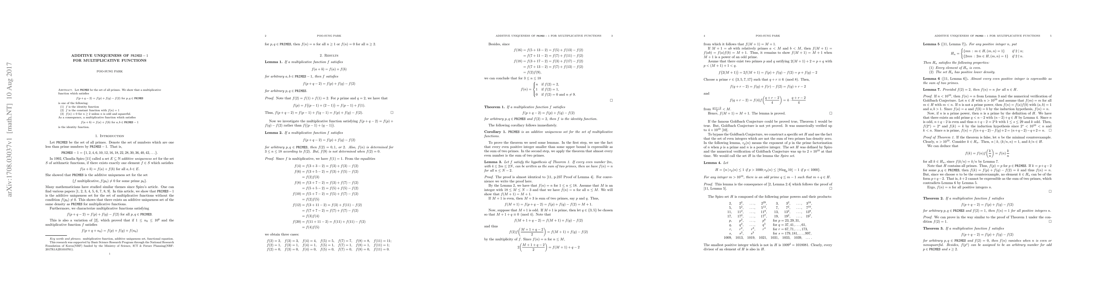 Let $\mathtt{PRIMES}$ be the set of all primes. We show that a multiplicative function which satisfies \[ f(p+q-2) = f(p) + f(q) - f(2) \text{ for }p,q \in \mathtt{PRIMES} \] is one of the following: \begin{enumerate} \item $f$ is the identity function \item $f$ is the constant function with $f(n)=1$ \item $f(n)=0$ for $n \ge2$ unless $n$ is odd and squareful. \end{enumerate} As a consequence, a multiplicative function which satisfies \[ f(a+b) = f(a) + f(b) \text{ for }a,b \in \mathtt{PRIMES}-1 \] is the identity function.
