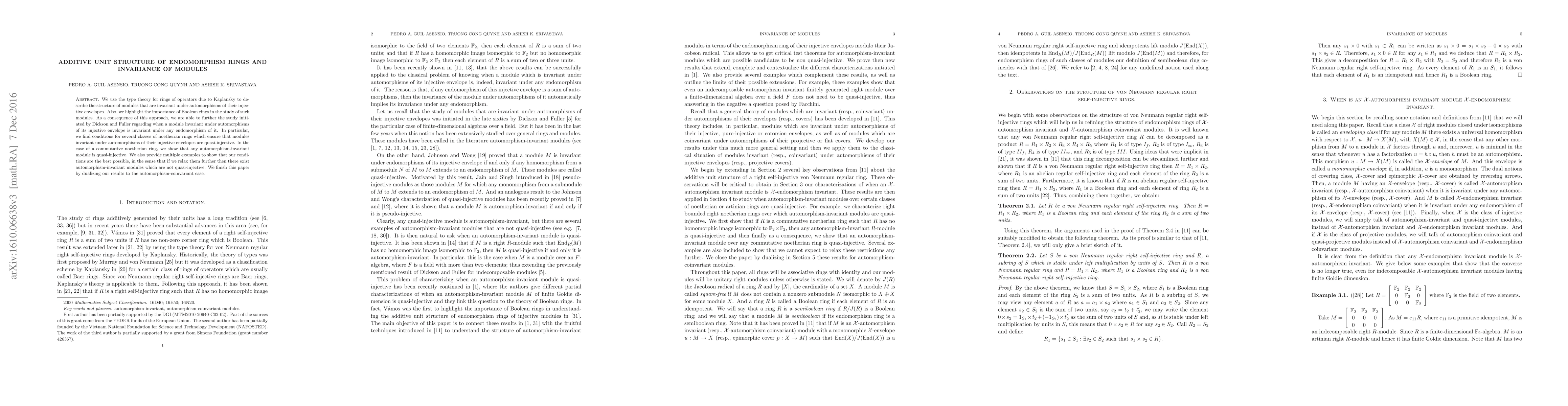 This paper explores the additive unit structure of endomorphism rings and the invariance of modules under automorphisms of their injective envelopes, using Kaplansky's type theory for rings of operators. It establishes conditions for noetherian rings ensuring that automorphism-invariant modules are quasi-injective, particularly proving this for commutative noetherian rings, and provides optimal examples.
