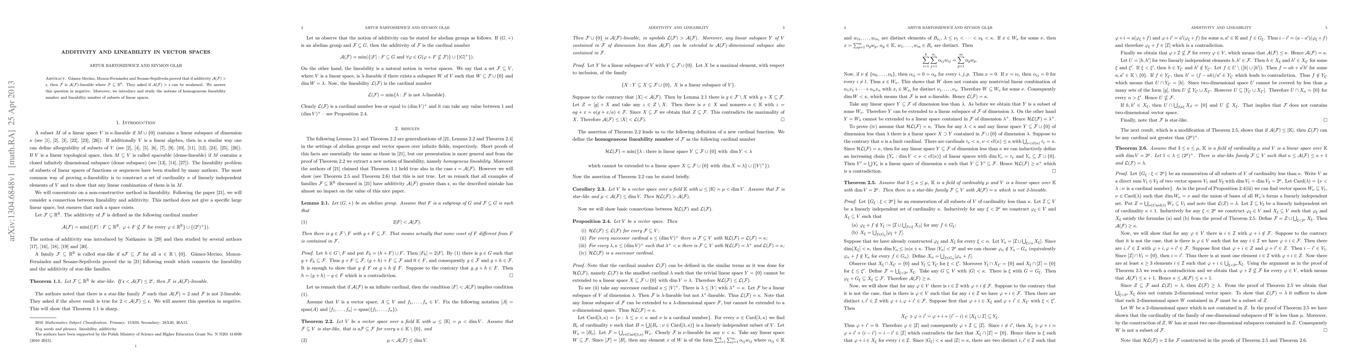 G\'amez-Merino, Munoz-Fern\'andez and Seoane-Sep\'ulveda proved that if additivity $\mathcal A(\mathcal F)>\mathfrak c$, then $\mathcal F$ is $\mathcal A(\mathcal F)$-lineable where $\mathcal F\subseteq\mathbb R^\mathbb R$. They asked if $\mathcal A(\mathcal F)>\mathfrak c$ can be weakened. We answer this question in negative. Moreover, we introduce and study the notions of homogeneous lineability number and lineability number of subsets of linear spaces.