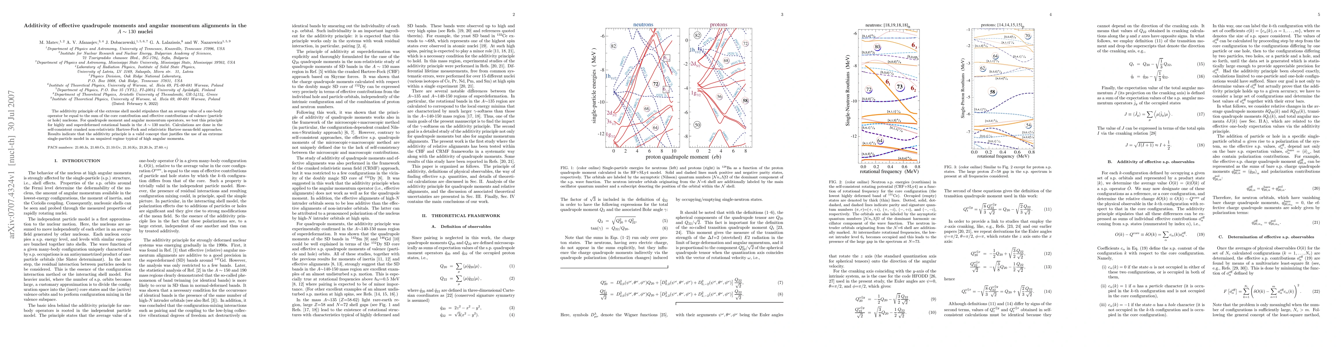 This paper tests the additivity principle in A~130 nuclei for quadrupole moments and angular momentum, finding it valid in highly and superdeformed rotational bands using self-consistent cranked Hartree-Fock and relativistic Hartree mean-field approaches, supporting the use of single-particle models in high angular momentum regimes.