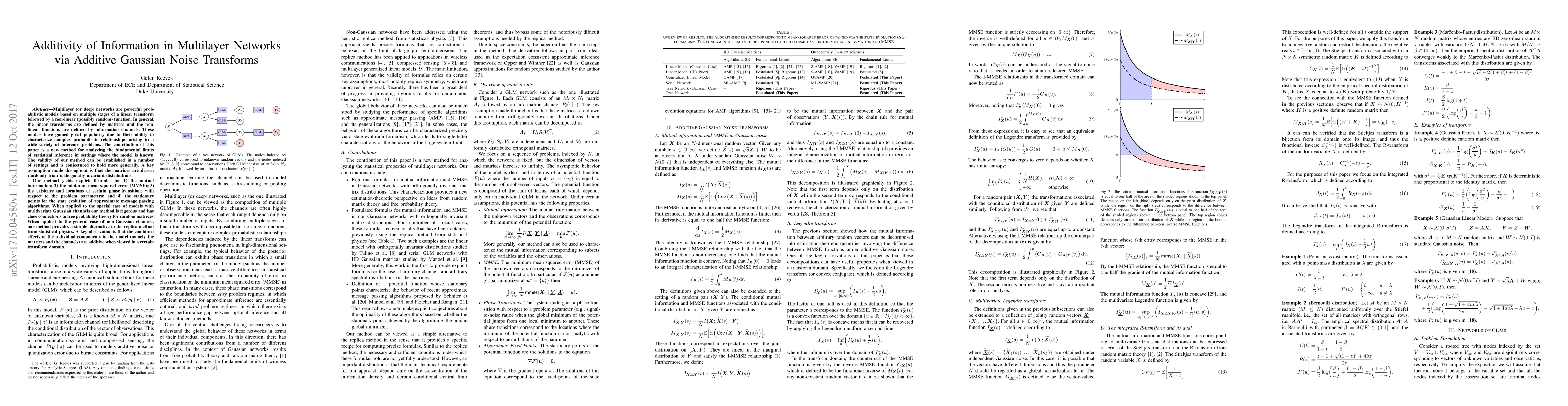 Researchers developed a method to analyze statistical inference in multilayer networks using additive Gaussian noise transforms, providing explicit formulas for mutual information, MMSE, phase transitions, and stationary points.