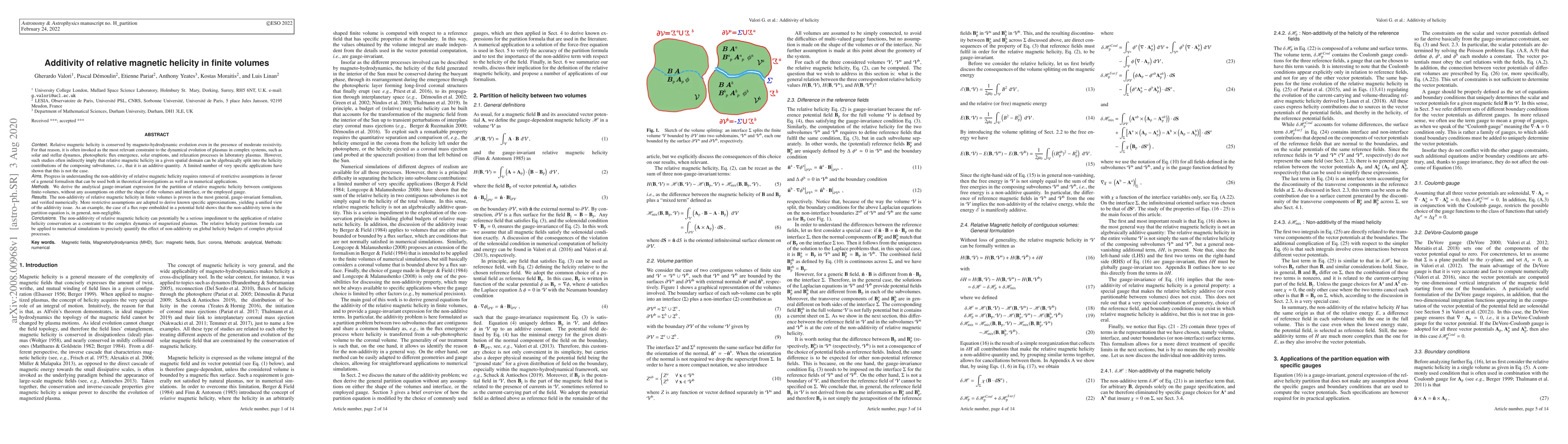 This paper derives a gauge-invariant expression for the partition of relative magnetic helicity between contiguous finite volumes, proving its non-additivity in the most general formalism. It demonstrates the non-negligible non-additivity term through numerical verification and specific approximations, providing a unified view for theoretical and numerical investigations.