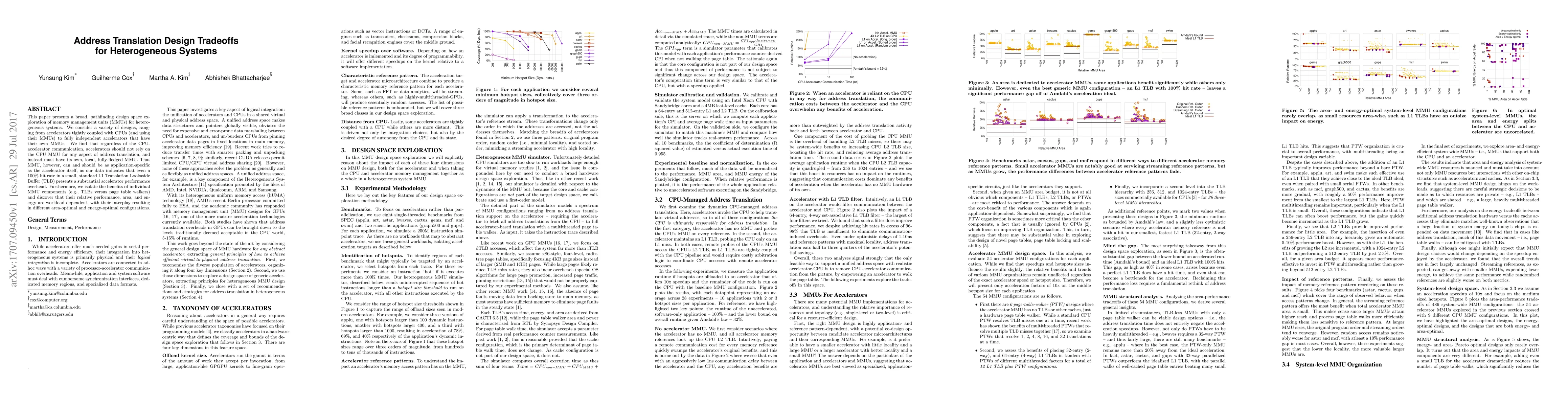 Researchers explored MMU design for heterogeneous systems, finding that accelerators should have their own local MMUs, but not rely on the CPU's MMU, to minimize performance overhead. The optimal configuration depends on workload, area, and energy constraints.