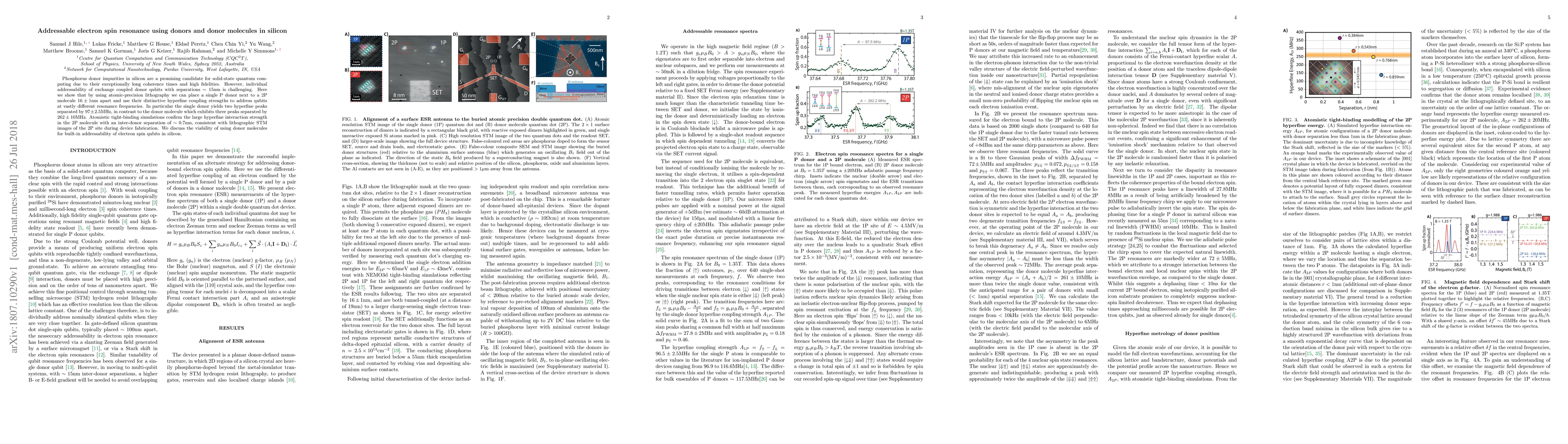 This paper demonstrates the use of atomic-precision lithography to place a single phosphorus donor next to a 2P molecule in silicon, achieving addressable electron spin resonance through distinct hyperfine coupling strengths, paving the way for enhanced quantum computing qubit addressability. Simulations and STM images confirm the feasibility of this approach for built-in addressability in silicon-based quantum computing.