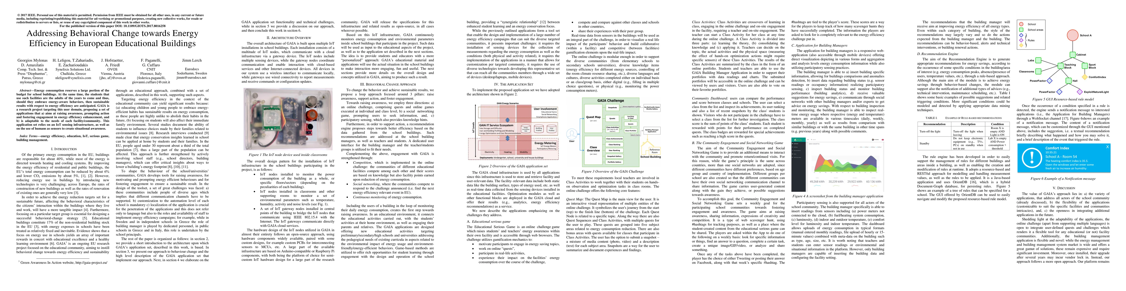 This research explores behavioral change towards energy efficiency in European educational buildings, focusing on students' future sustainable habits. The GAIA project proposes applications to raise awareness and foster engagement through an IoT infrastructure and human-sensor collaboration.