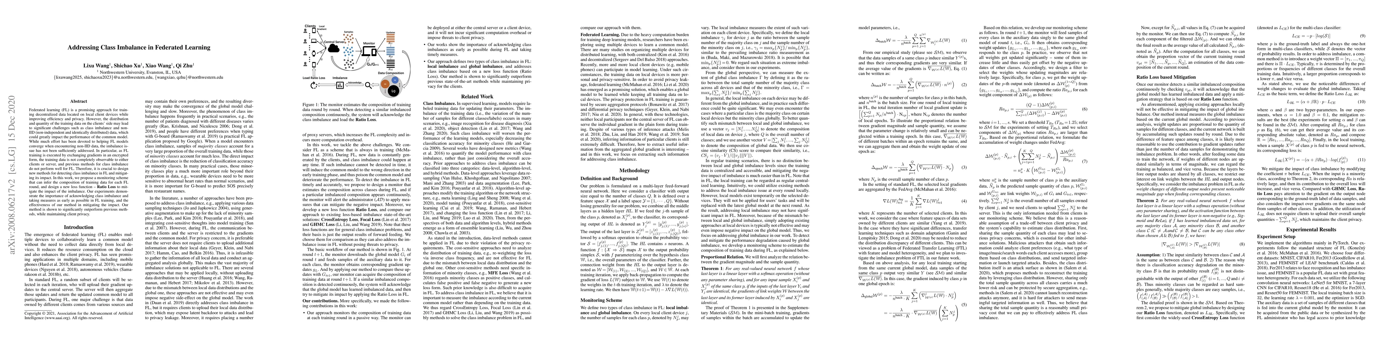 This paper proposes a monitoring scheme and a new Ratio Loss function to address class imbalance in federated learning, demonstrating improved performance and privacy compared to existing methods. The approach effectively mitigates the impact of imbalanced data during FL training.