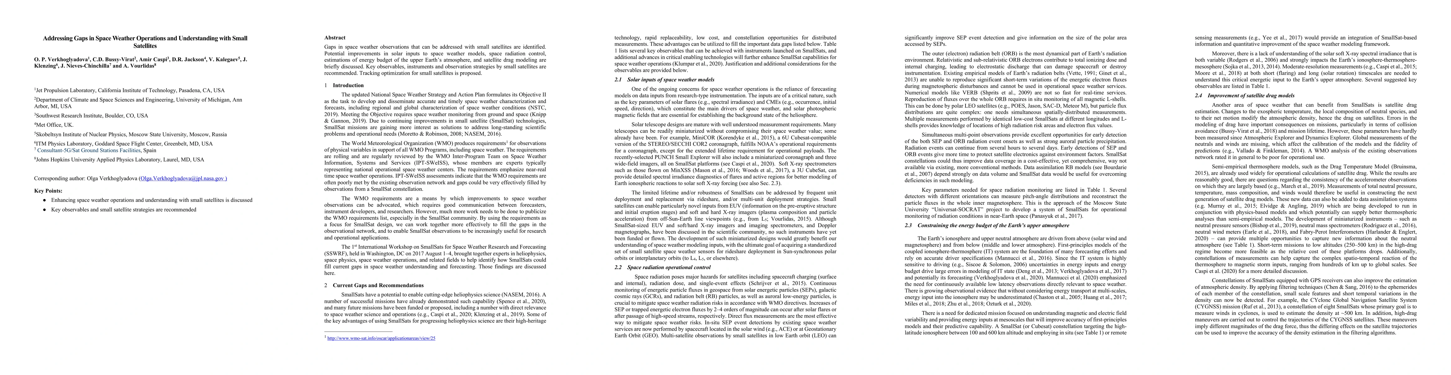 This paper identifies gaps in space weather observations that small satellites can fill, recommending enhancements in solar inputs, space radiation control, upper atmosphere energy budget estimations, and satellite drag modeling. It proposes key observables, instruments, and tracking optimization strategies for small satellites to address these gaps.