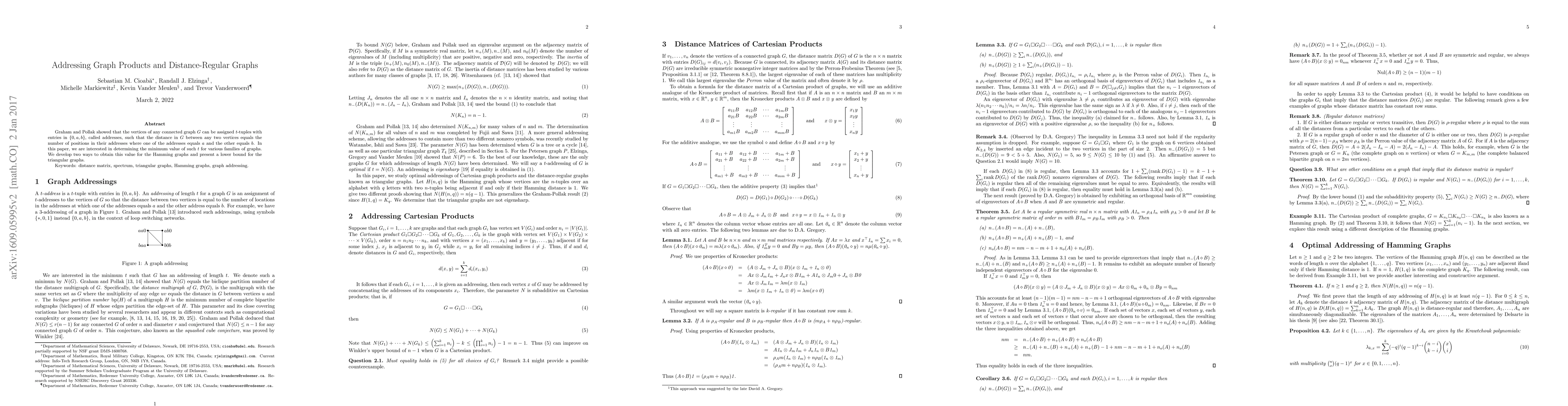 Graham and Pollak showed that the vertices of any connected graph $G$ can be assigned $t$-tuples with entries in $\{0, a, b\}$, called addresses, such that the distance in $G$ between any two vertices equals the number of positions in their addresses where one of the addresses equals $a$ and the other equals $b$. In this paper, we are interested in determining the minimum value of such $t$ for various families of graphs. We develop two ways to obtain this value for the Hamming graphs and present a lower bound for the triangular graphs.