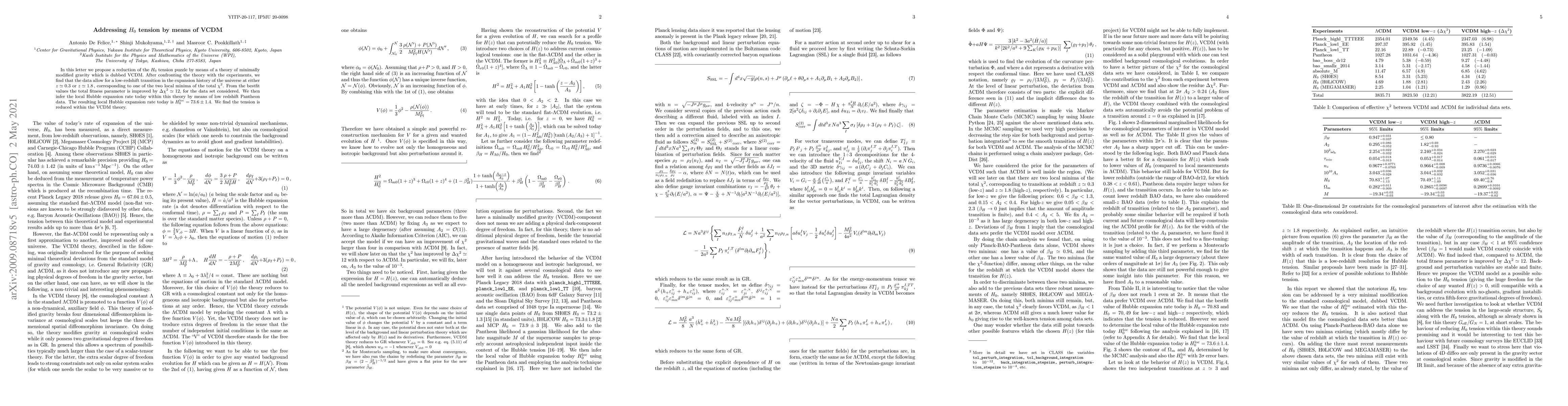 In this letter we propose a reduction of the $H_0$ tension puzzle by means of a theory of minimally modified gravity which is dubbed VCDM. After confronting the theory with the experiments, we find that the data allow for a low-redshift transition in the expansion history of the universe at either $z\simeq 0.3 $ or $z \simeq 1.8\,$, corresponding to one of the two local minima of the total $\chi^2$. From the bestfit values the total fitness parameter is improved by $\Delta \chi^2 \simeq 12$, for the data set considered. We then infer the local Hubble expansion rate today within this theory by means of low redshift Pantheon data. The resulting local Hubble expansion rate today is $H^{\rm{loc}}_0=73.6\pm1.4$. We find the tension is reduced within the VCDM theory.