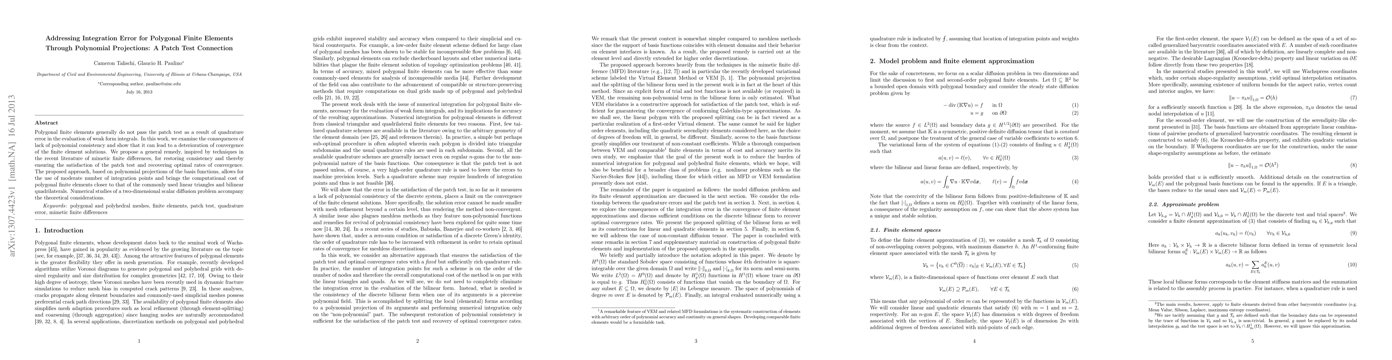 This research paper proposes a method to address integration errors in polygonal finite elements, ensuring satisfaction of the patch test and optimal convergence rates. It uses polynomial projections to restore consistency and brings computational costs closer to those of linear triangles and bilinear quadrilaterals.
