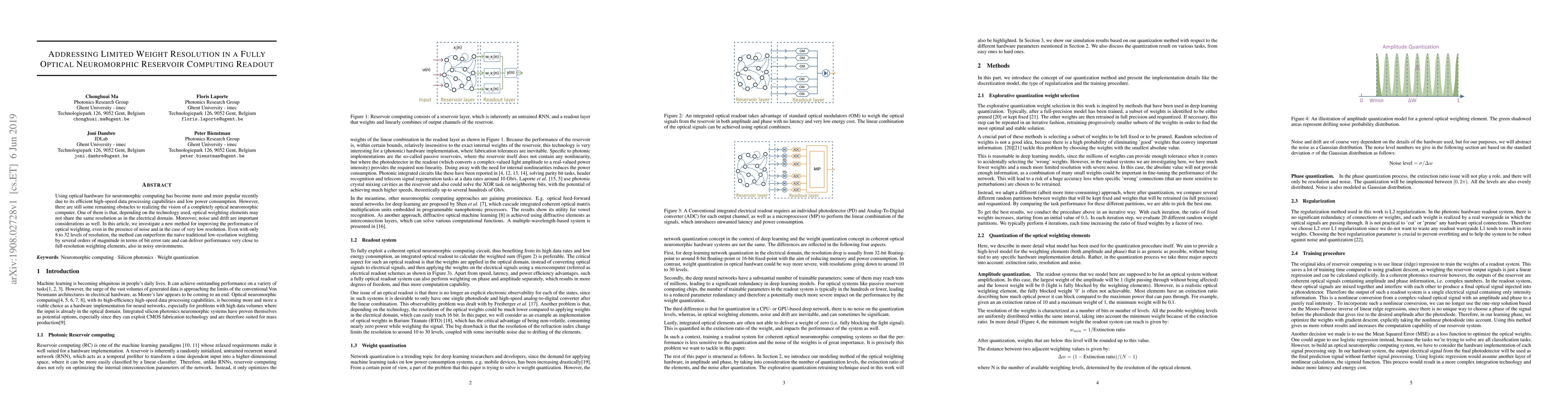 Using optical hardware for neuromorphic computing has become more and more popular recently due to its efficient high-speed data processing capabilities and low power consumption. However, there are still some remaining obstacles to realizing the vision of a completely optical neuromorphic computer. One of them is that, depending on the technology used, optical weighting elements may not share the same resolution as in the electrical domain. Moreover, noise and drift are important considerations as well. In this article, we investigate a new method for improving the performance of optical weighting, even in the presence of noise and in the case of very low resolution. Even with only 8 to 32 levels of resolution, the method can outperform the naive traditional low-resolution weighting by several orders of magnitude in terms of bit error rate and can deliver performance very close to full-resolution weighting elements, also in noisy environments.