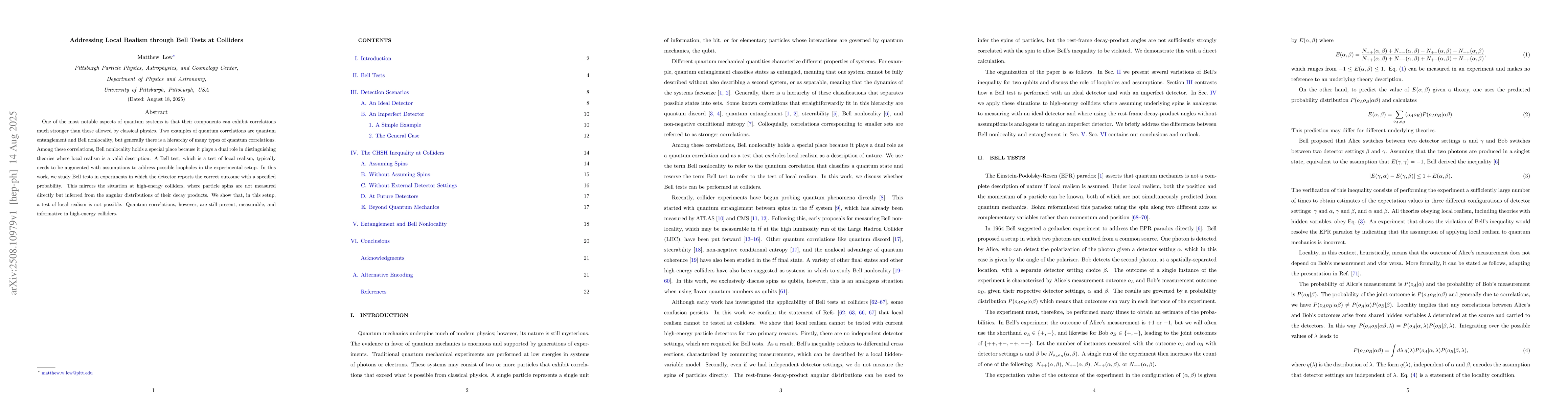 One of the most notable aspects of quantum systems is that their components can exhibit correlations much stronger than those allowed by classical physics. Two examples of quantum correlations are quantum entanglement and Bell nonlocality, but generally there is a hierarchy of many types of quantum correlations. Among these correlations, Bell nonlocality holds a special place because it plays a dual role in distinguishing theories where local realism is a valid description. A Bell test, which is a test of local realism, typically needs to be augmented with assumptions to address possible loopholes in the experimental setup. In this work, we study Bell tests in experiments in which the detector reports the correct outcome with a specified probability. This mirrors the situation at high-energy colliders, where particle spins are not measured directly but inferred from the angular distributions of their decay products. We show that, in this setup, a test of local realism is not possible. Quantum correlations, however, are still present, measurable, and informative in high-energy colliders.