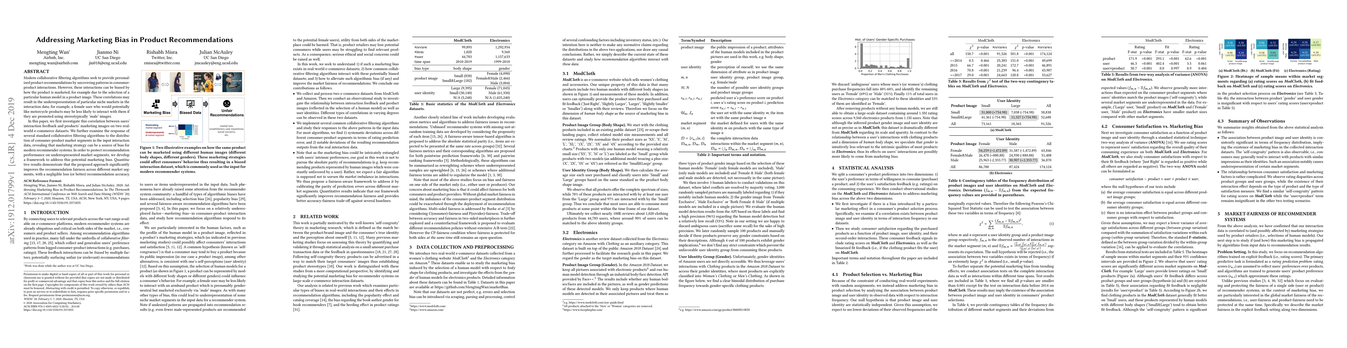 A new framework addresses marketing bias in product recommendations by considering the impact of marketing images on user interactions, improving recommendation fairness across underrepresented market segments with minimal loss in accuracy.