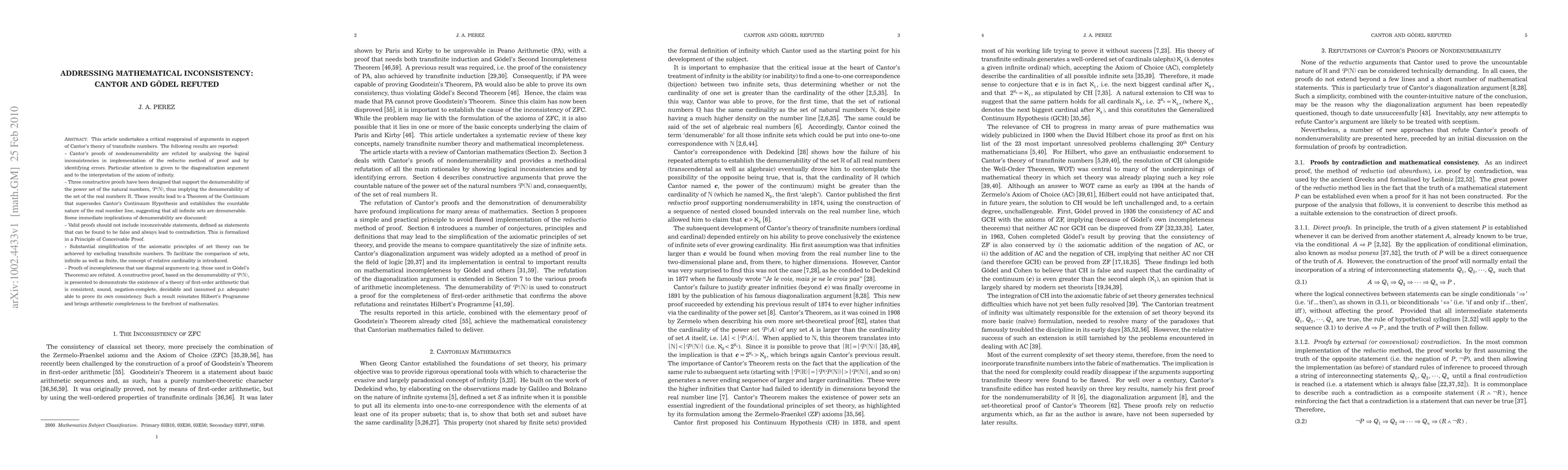 Researchers refute Cantor's theory of transfinite numbers with new constructive proofs, leading to a theorem that supersedes the Continuum Hypothesis and establishes the countable nature of real numbers, while also introducing a Principle of Conceivable Proof.