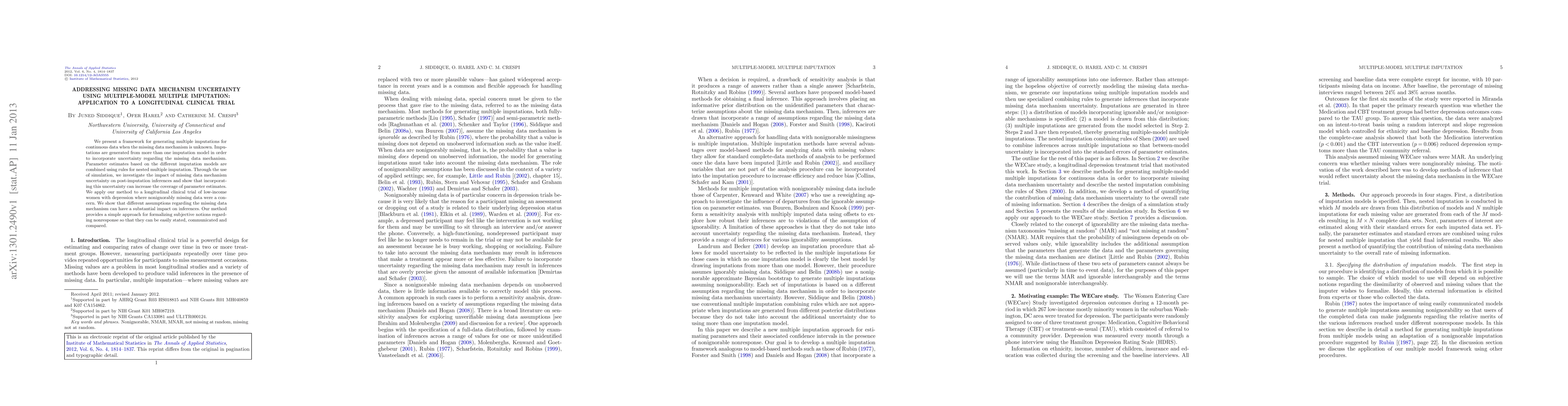 This paper proposes a framework for multiple imputation that accounts for uncertainty in missing data mechanisms by using multiple imputation models. It demonstrates that incorporating this uncertainty can improve the accuracy of parameter estimates in longitudinal clinical trials, particularly in cases with nonignorably missing data.