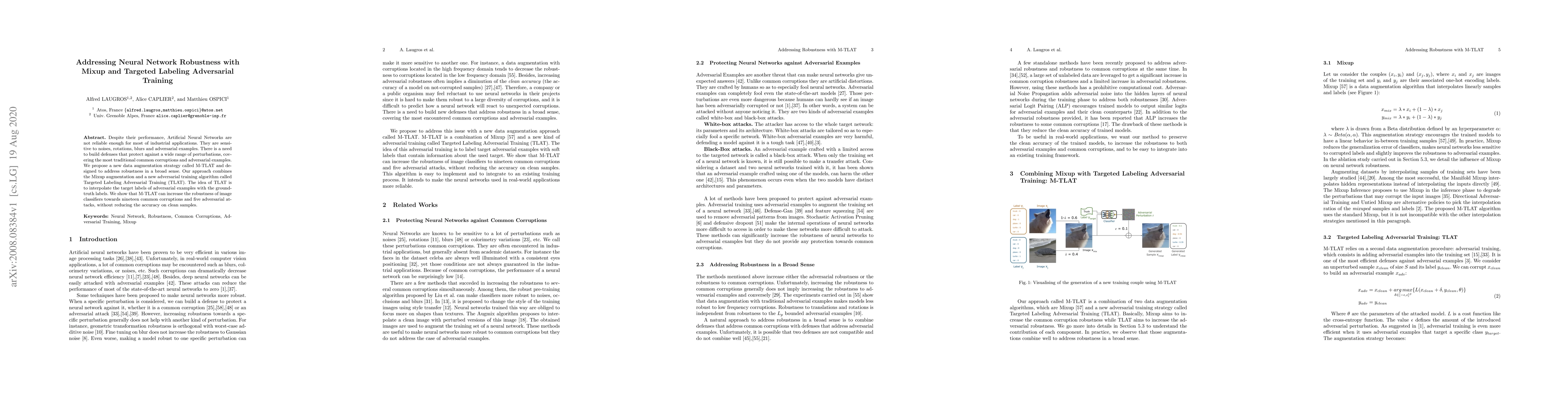 This research paper proposes a new data augmentation strategy called M-TLAT to improve neural network robustness against common corruptions and adversarial examples, achieving higher accuracy on noisy samples without reducing performance on clean samples.