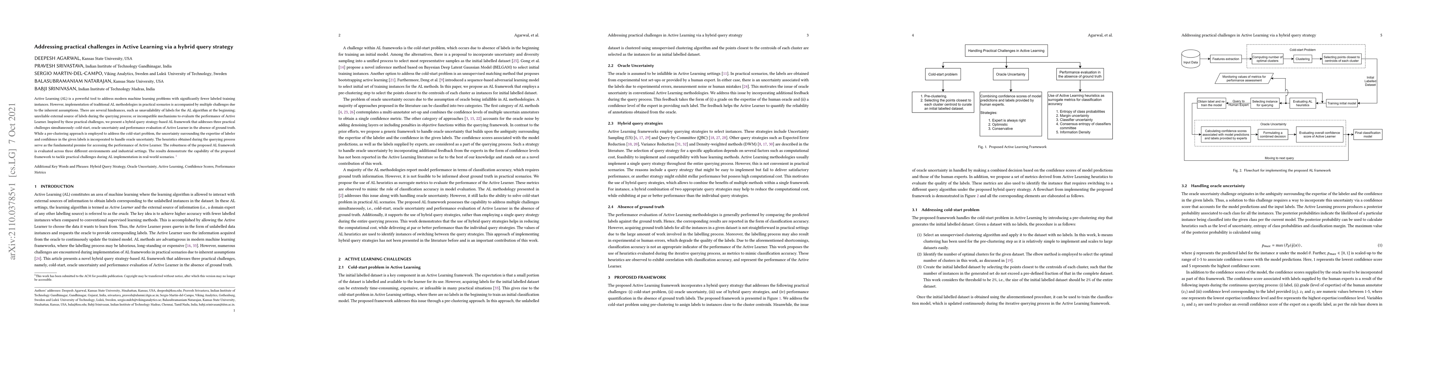 This paper proposes a hybrid query strategy for Active Learning to address practical challenges like cold-start, oracle uncertainty, and performance evaluation without ground truth. The framework uses pre-clustering and incorporates labeler confidence to handle these issues, demonstrating robustness across various environments.