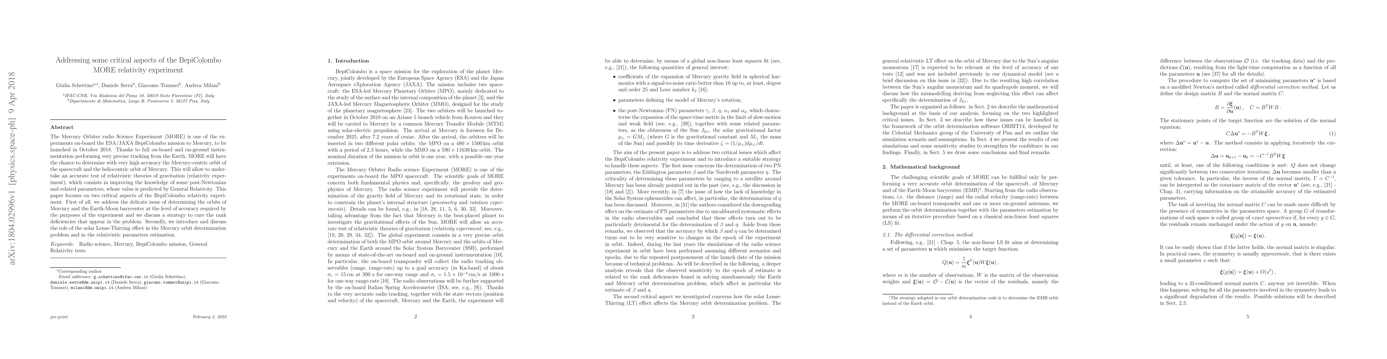 A study addresses critical aspects of a relativity experiment on the BepiColombo mission to Mercury, focusing on orbit determination accuracy and the role of the solar Lense-Thirring effect.