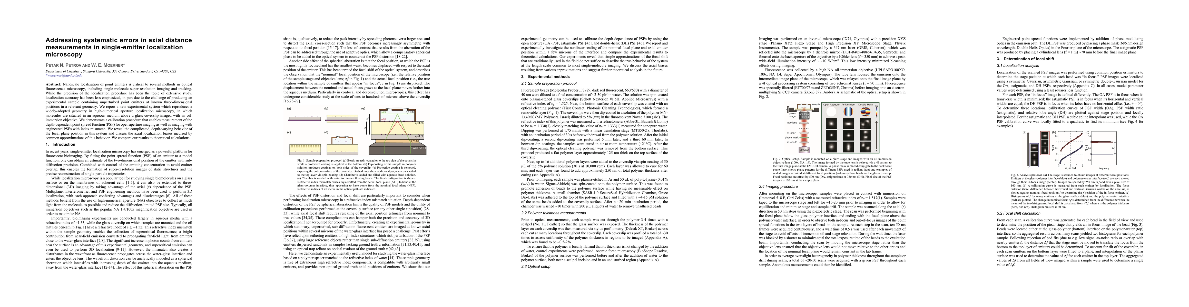 Researchers developed a new system to measure axial distance in single-emitter localization microscopy with improved precision, revealing complex depth-varying behavior of the focal plane position.