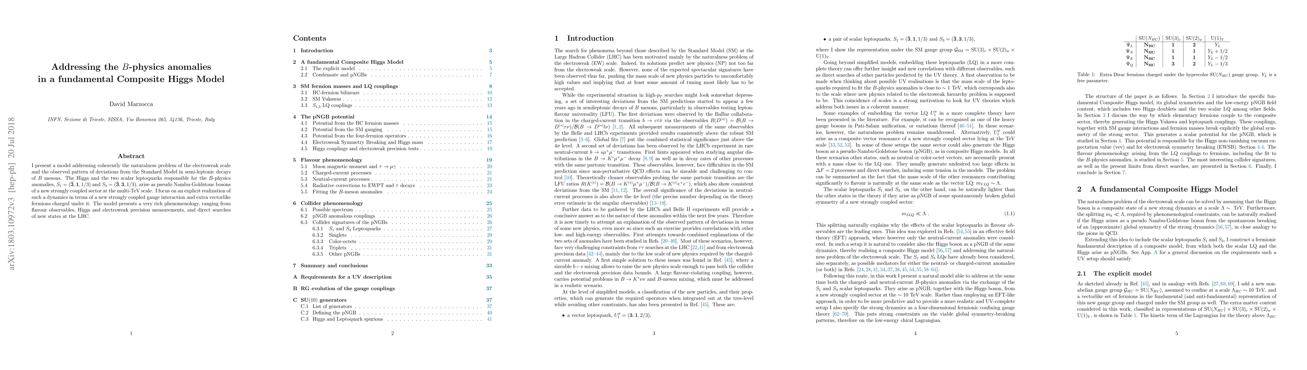 I present a model addressing coherently the naturalness problem of the electroweak scale and the observed pattern of deviations from the Standard Model in semi-leptonic decays of $B$ mesons. The Higgs and the two scalar leptoquarks responsible for the $B$-physics anomalies, $S_1 = ({\bf \bar 3}, {\bf 1}, 1/3)$ and $S_3 = ({\bf \bar 3}, {\bf 3}, 1/3)$, arise as pseudo Nambu-Goldstone bosons of a new strongly coupled sector at the multi-TeV scale. I focus on an explicit realization of such a dynamics in terms of a new strongly coupled gauge interaction and extra vectorlike fermions charged under it. The model presents a very rich phenomenology, ranging from flavour observables, Higgs and electroweak precision measurements, and direct searches of new states at the LHC.