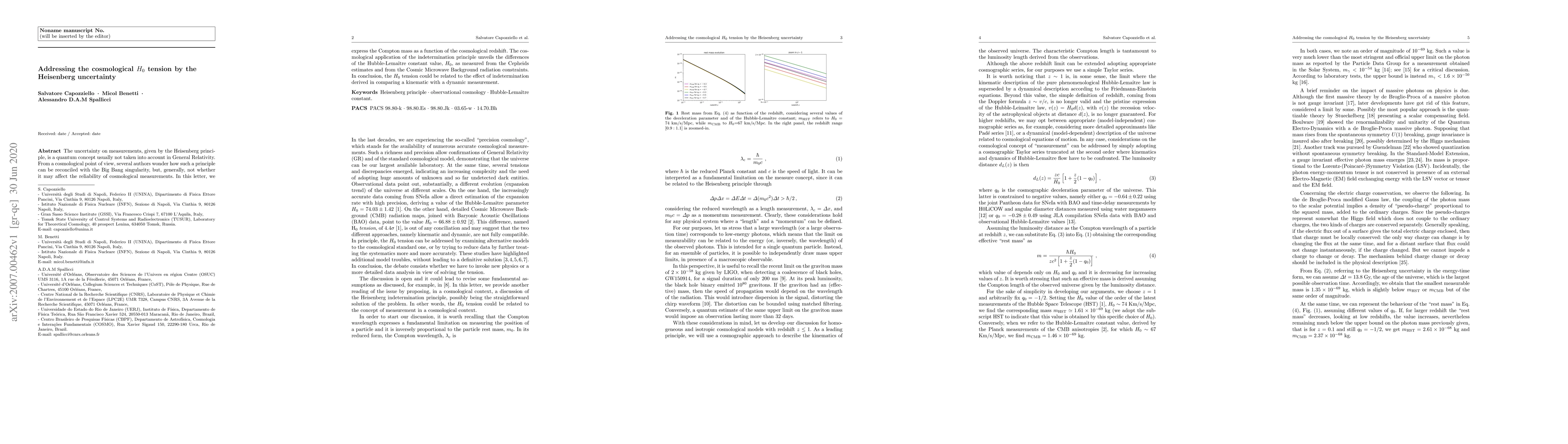 The uncertainty on measurements, given by the Heisenberg principle, is a quantum concept usually not taken into account in General Relativity. From a cosmological point of view, several authors wonder how such a principle can be reconciled with the Big Bang singularity, but, generally, not whether it may affect the reliability of cosmological measurements. In this letter, we express the {Compton mass} as a function of the cosmological redshift. The cosmological application of the indetermination principle unveils the differences of the Hubble-Lema\^{i}tre constant value, $H_0$, as measured from the Cepheids estimates and from the Cosmic Microwave Background radiation constraints. In conclusion, the $H_0$ tension could be related to the effect of indetermination derived in comparing a kinematic with a dynamic measurement.
