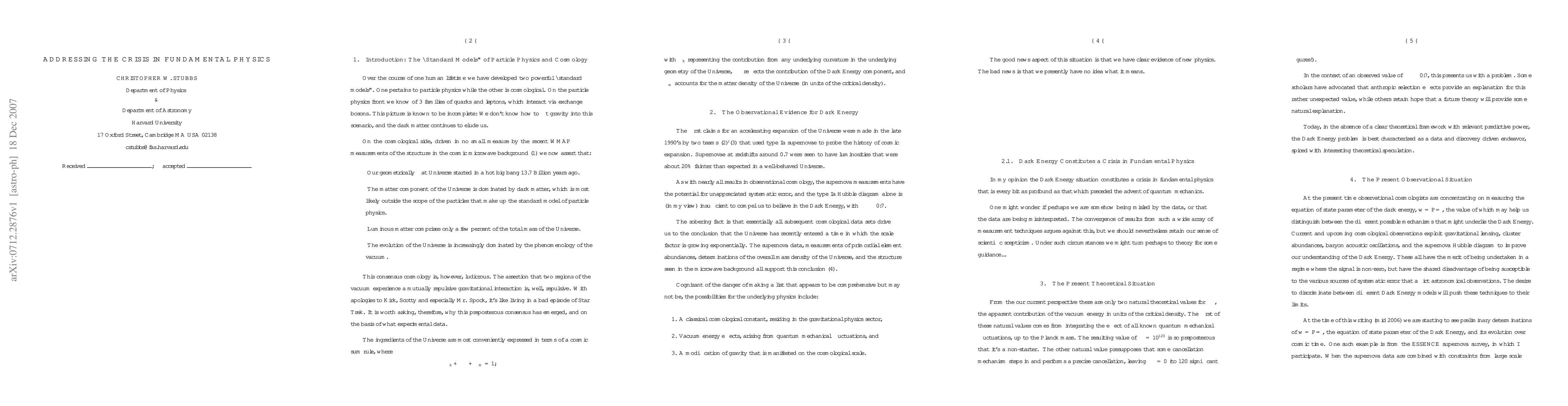 I present the case for fundamental physics experiments in space playing an important role in addressing the current "dark energy'' crisis. If cosmological observations continue to favor a value of the dark energy equation of state parameter w=-1, with no change over cosmic time, then we will have difficulty understanding this new fundamental physics. We will then face a very real risk of stagnation unless we detect some other experimental anomaly. The advantages of space-based experiments could prove invaluable in the search for the a more complete understanding of dark energy. This talk was delivered at the start of the Fundamental Physics Research in Space Workshop in May 2006.