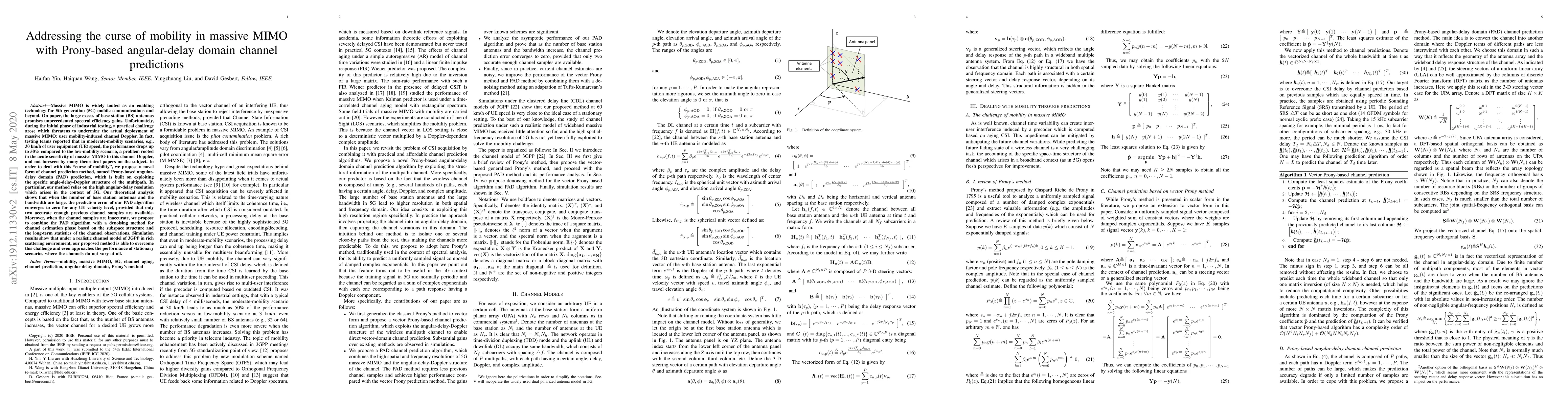 This paper proposes a Prony-based angular-delay domain (PAD) prediction method to address the "curse of mobility" in massive MIMO systems, which suffer significant performance drops due to user mobility-induced channel Doppler. The PAD method leverages high angular-delay resolution to achieve near-zero prediction error under large base station antennas and bandwidth, even with moderate user speeds, outperforming stationary scenarios.