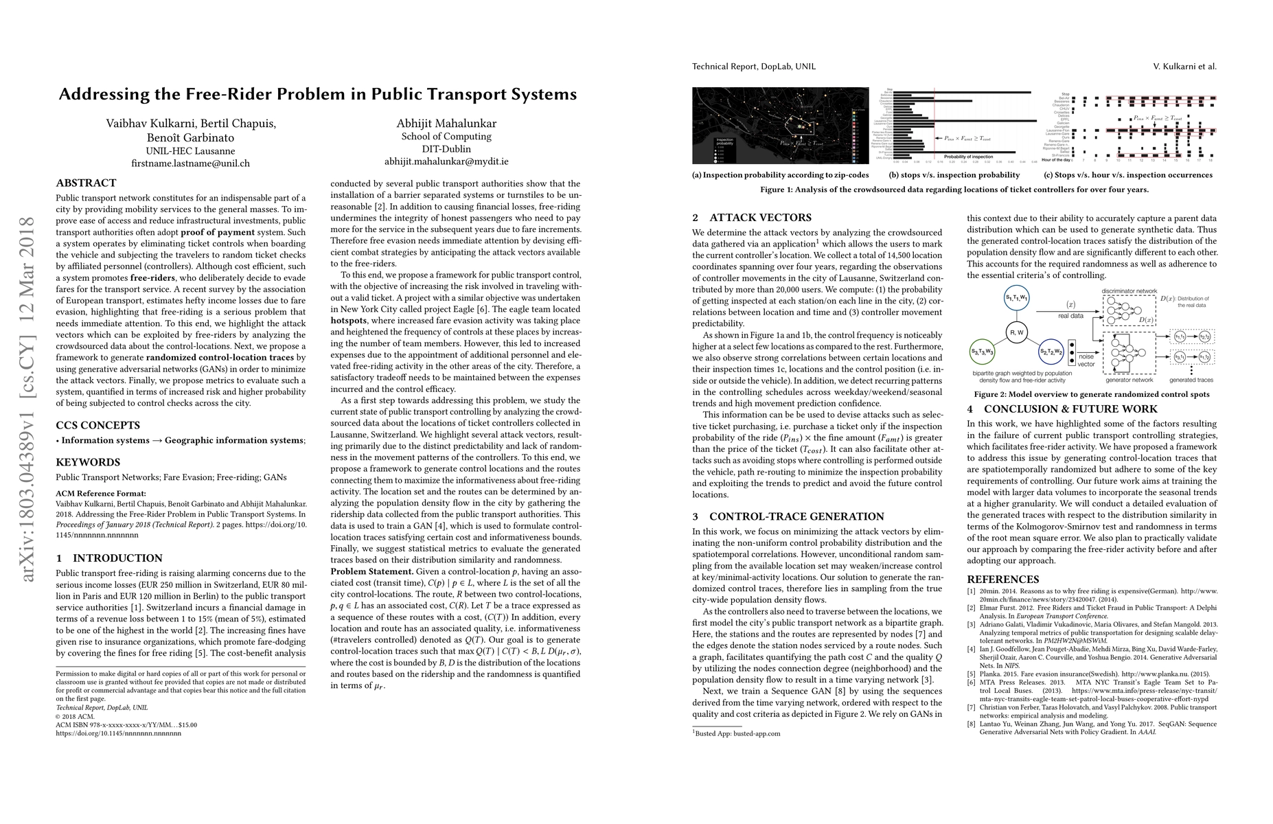 Public transport network constitutes for an indispensable part of a city by providing mobility services to the general masses. To improve ease of access and reduce infrastructural investments, public transport authorities often adopt proof of payment system. Such a system operates by eliminating ticket controls when boarding the vehicle and subjecting the travelers to random ticket checks by affiliated personnel (controllers). Although cost efficient, such a system promotes free-riders, who deliberately decide to evade fares for the transport service. A recent survey by the association of European transport, estimates hefty income losses due to fare evasion, highlighting that free-riding is a serious problem that needs immediate attention. To this end, we highlight the attack vectors which can be exploited by free-riders by analyzing the crowdsourced data about the control-locations. Next, we propose a framework to generate randomized control-location traces by using generative adversarial networks (GANs) in order to minimize the attack vectors. Finally, we propose metrics to evaluate such a system, quantified in terms of increased risk and higher probability of being subjected to control checks across the city.